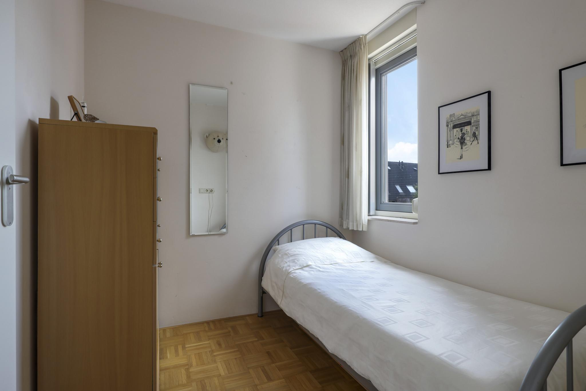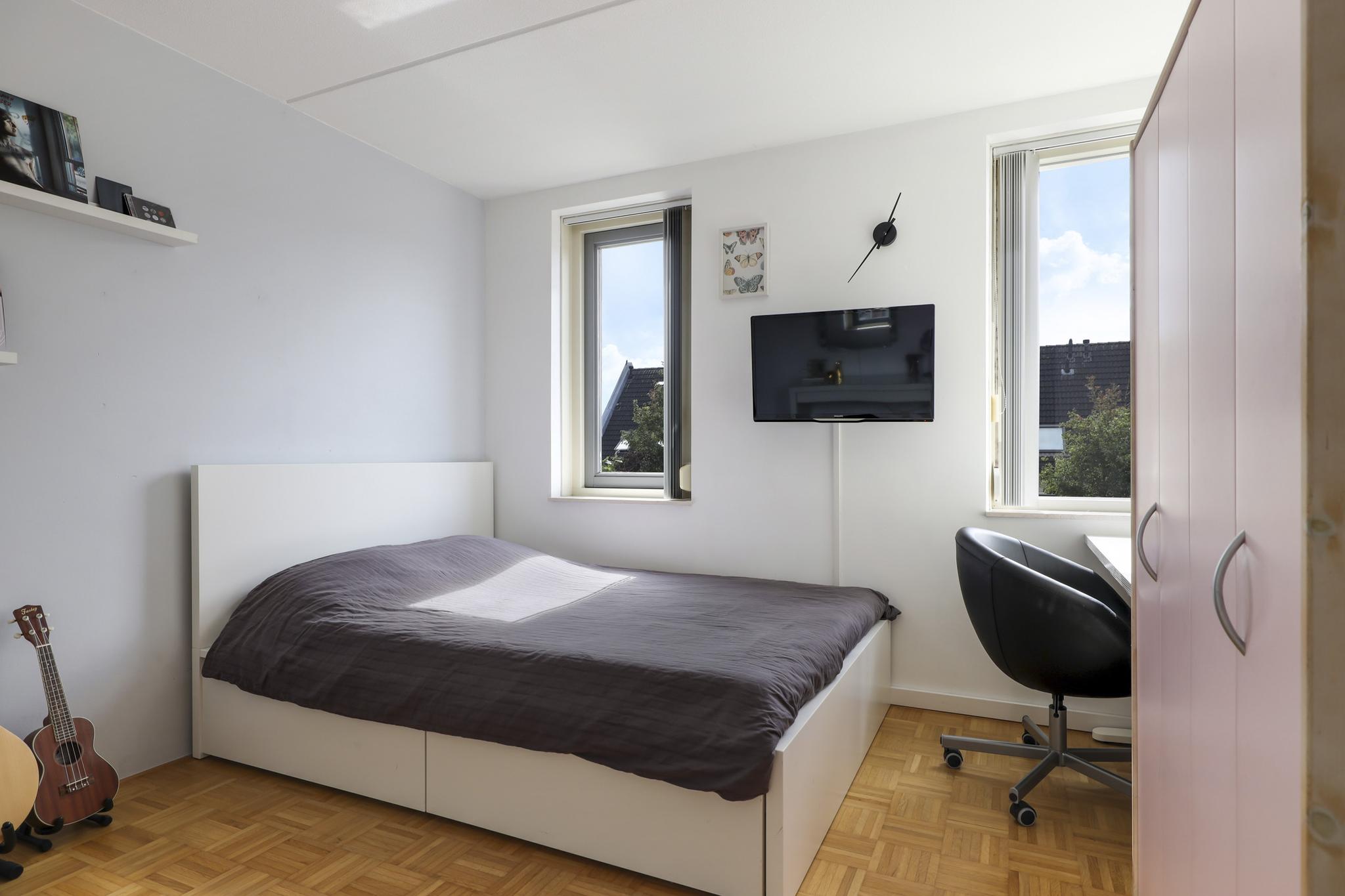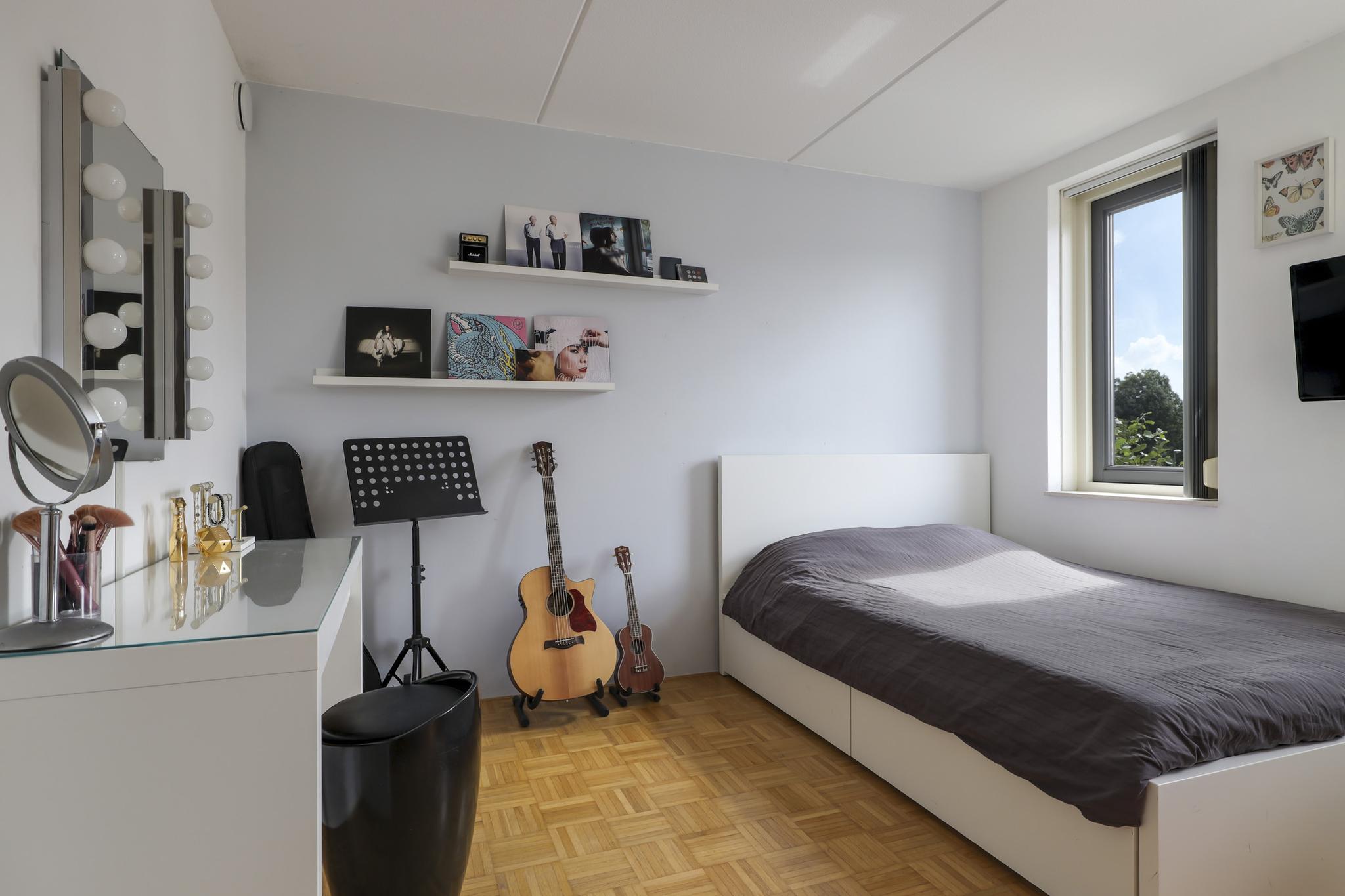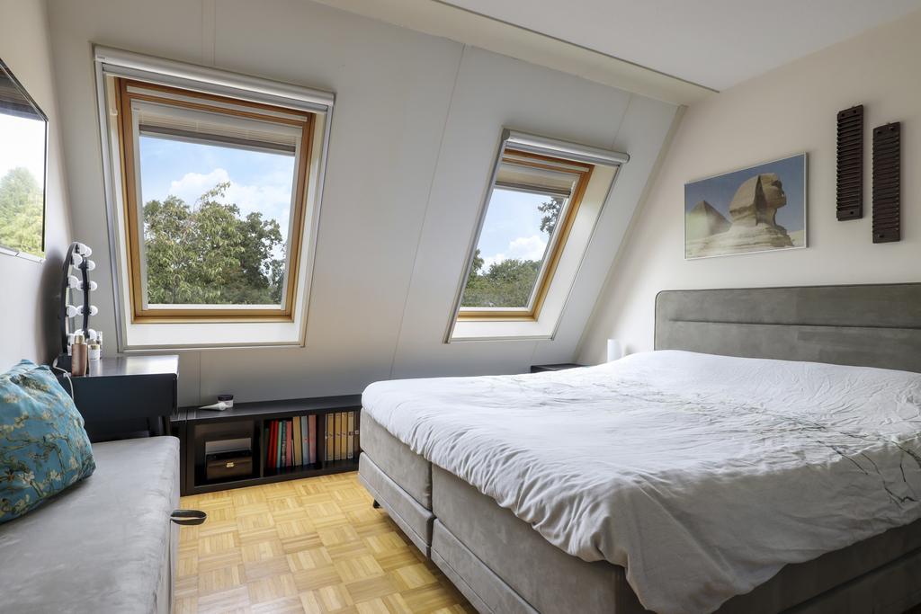 Via de hal en trapopgang bereiken we de 1e verdieping. Deze woonlaag is ingedeeld met 3 slaapkamers en de badkamer. Twee slaapkamers zijn bijzonder ruim (beiden ca. 12m2) waardoor je kunt kiezen welke kamer je gaat inrichten als hoofdslaapkamer. De 3e slaapkamer is kleiner maar betreft een prima kinder- of werk/studiekamer. Noemenswaardig zijn de gladde stucwanden alsmede de houten parketvloer. Vloerverwarming/koeling zorgt ook hier voor een aangenaam leefklimaat. De slaapkamers aan de voorzijde zijn overigens volledig te verduisteren middels rolluiken. De slaapkamer aan de achterzijde heeft dakvensters die voorzien zijn van warmtewerende plissé shades en rolhorren.