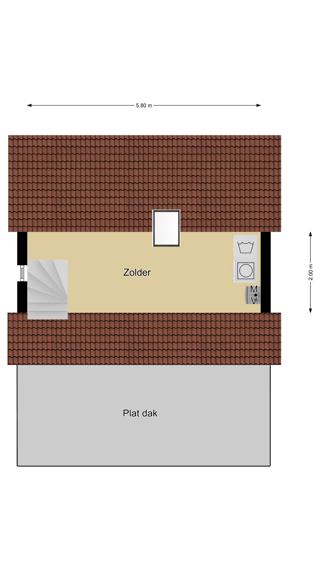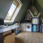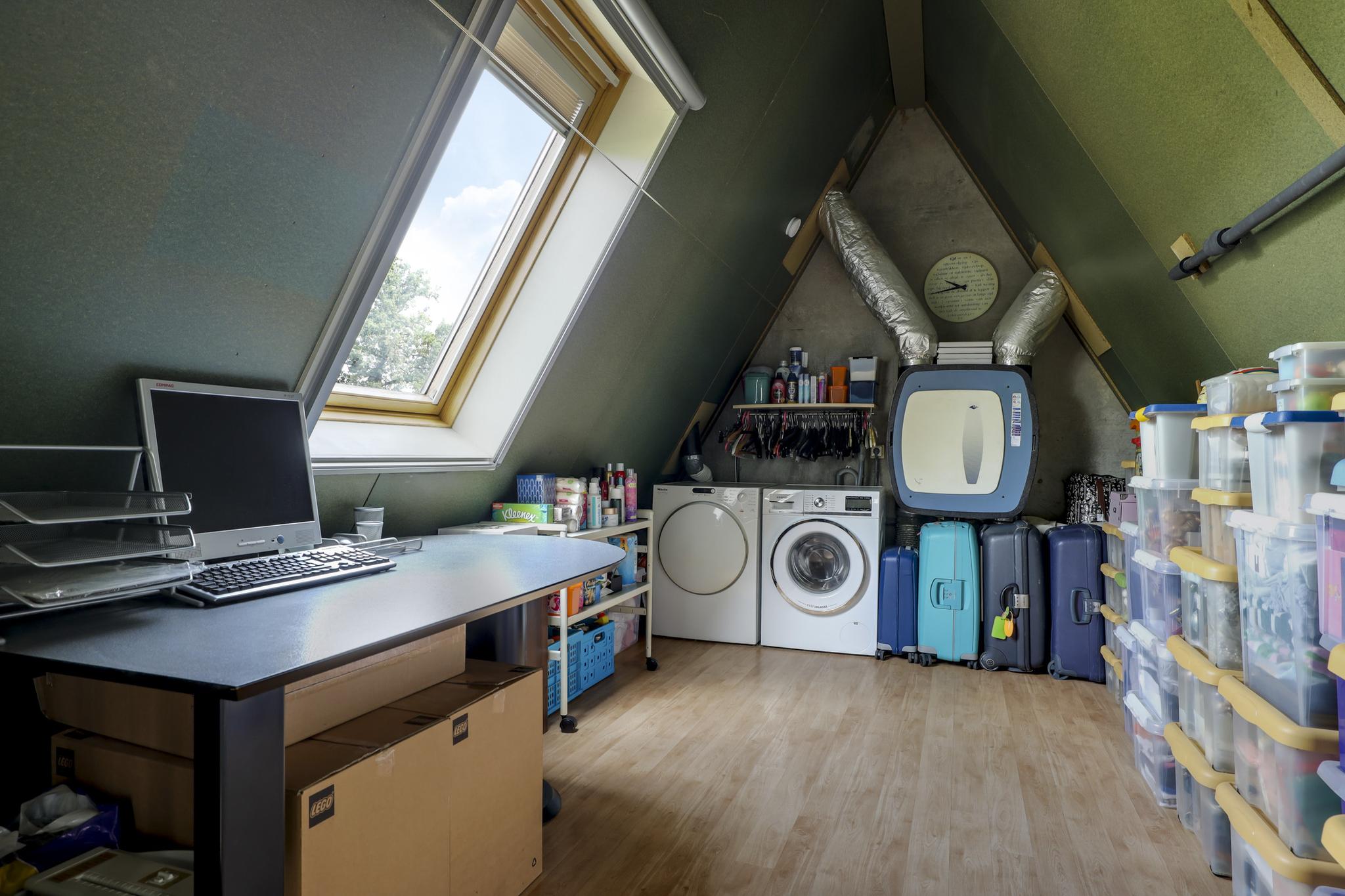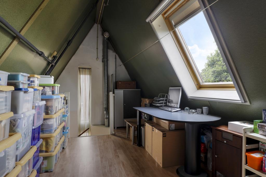 Deze woonlaag is wat smaller, maar biedt wel degelijk de mogelijkheid om een 4e (slaap)kamer te creëren. Dit zou eventueel in combinatie met een extra dakkapel kunnen (zie ook andere woningen in de straat). In de huidige setting wordt deze verdieping gebruikt als wasruimte en opslag. Op de zolder is aan weerszijden een aparte aansluiting voor de wasmachine inclusief afvoer, dit geeft de mogelijkheid voor een extra wasbak.