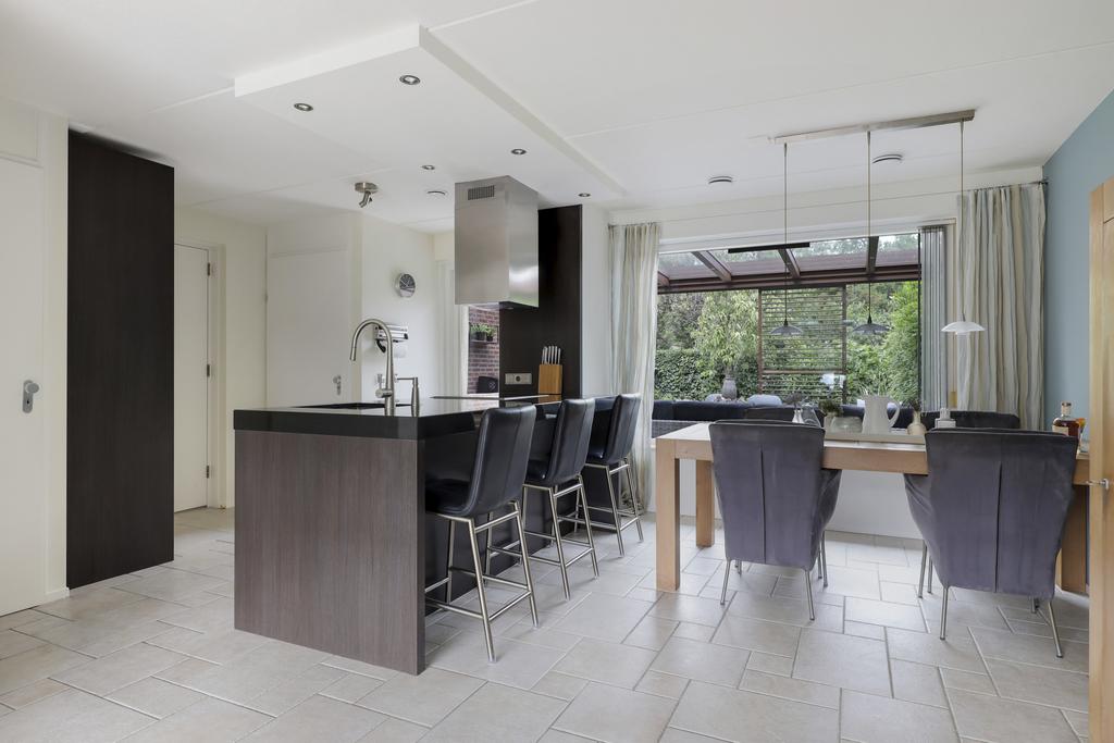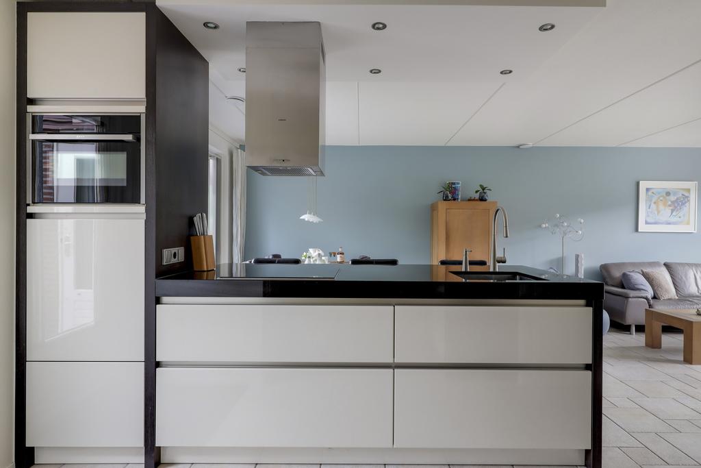 Een echte eye-catcher in deze woning is de keuken die stijlvol in een schiereiland en een hoge kastenwand is vormgegeven. Hier is iemand bezig geweest die het maximale uit de opstelling heeft gehaald, zonder dat het ten koste is gegaan van het gebruikscomfort.
