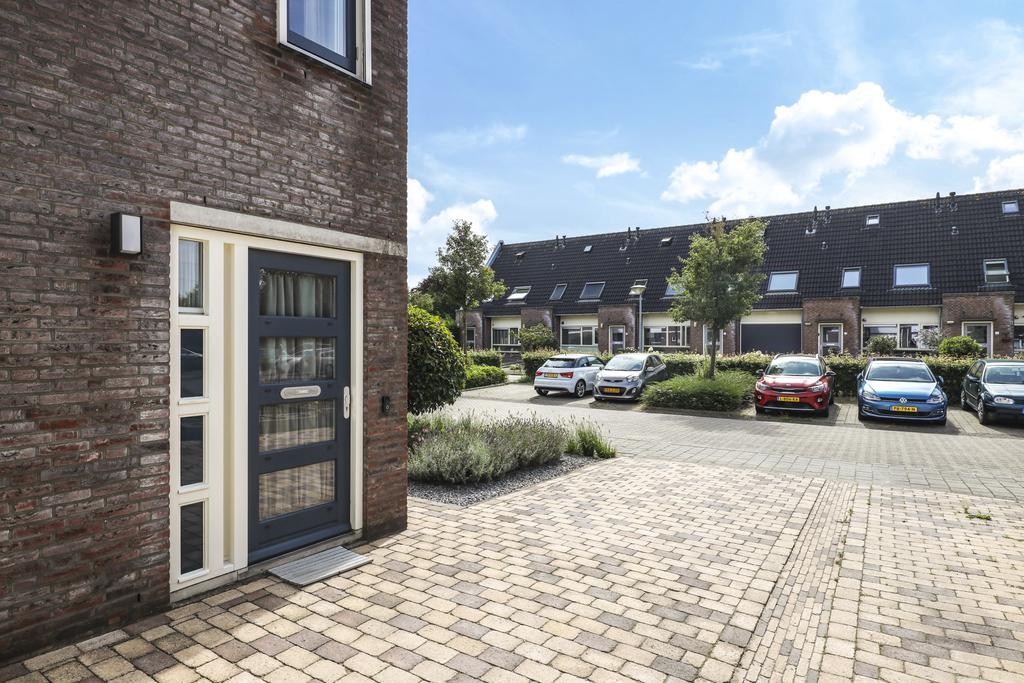 De oprit biedt comfortabele parkeergelegenheid voor 2 auto’s op eigen terrein. De woning is aan een ruim opgezette, groene aangeklede en autoluwe straat gelegen met aan het einde een grasveld met speelvoorzieningen.