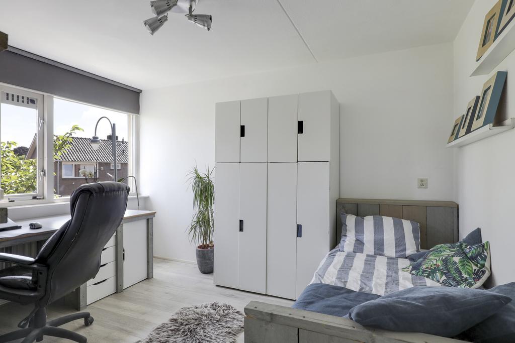 Quote van de makelaar: “Ben je op zoek naar een ruim opgezette, complete gezinswoning? Dan is dit de uitgelezen kans! De 5 volwaardige slaapkamers, de aparte wasruimte, een inpandige garage en natuurlijk de brede oprit zijn slechts enkele pluspunten die deze woning te bieden heeft.”.