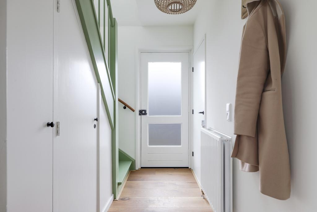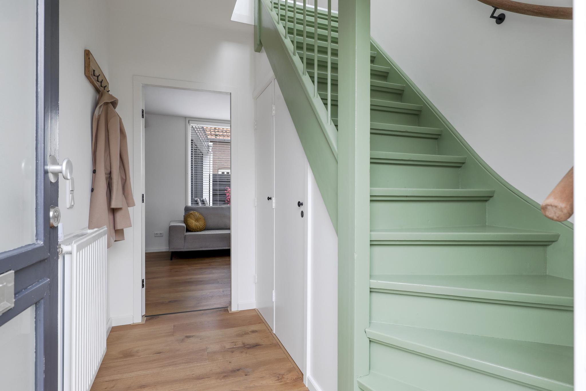 Entree met meterkast en toilet, trapkast, en trapopgang