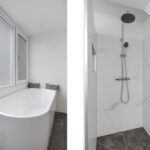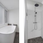 Nieuwe badkamer met o.a. ligbad, inloopdouche en wastafelmeubel