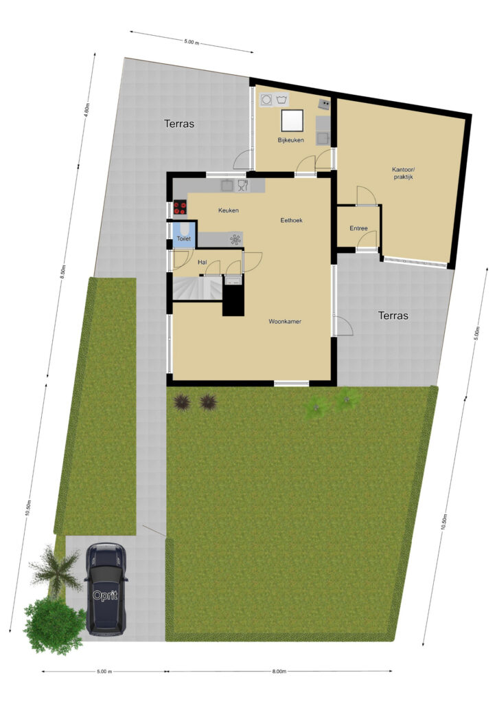 Voorin de tuin is een oprit te vinden. Hier parkeer je gemakkelijk je auto op eigen terrein. Er is een mogelijkheid om de oprit te verbreden waardoor je meerdere auto’s op eigen terrein kunt parkeren.