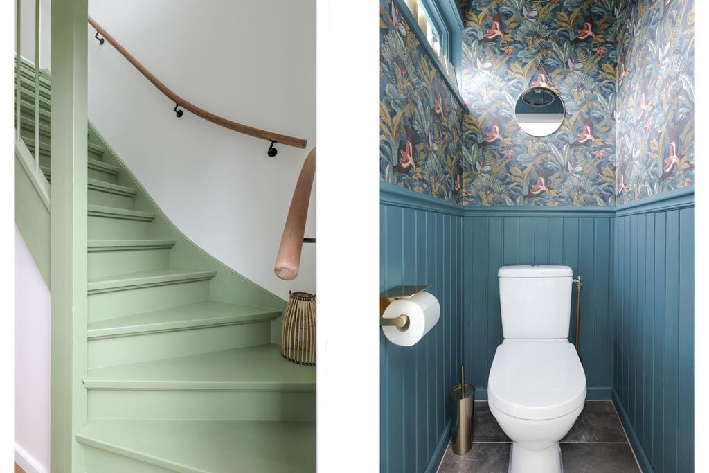 Gestucte wanden in de woonkamer, hal en eerste verdieping