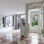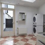Naast de keuken is de bijkeuken te vinden. Door de ruime opzet heb je hier nog veel mogelijkheden. Een lichtkoepel in het dak biedt ook deze ruimte veel lichtinval. Naast de witgoedaansluitingen tref je hier tevens de opstelling van de cv-ketel aan. Er is zelfs een klein keukenblokje aanwezig. Vanuit de bijkeuken zijn de tuin en de kantoor/praktijkruimte bereikbaar.