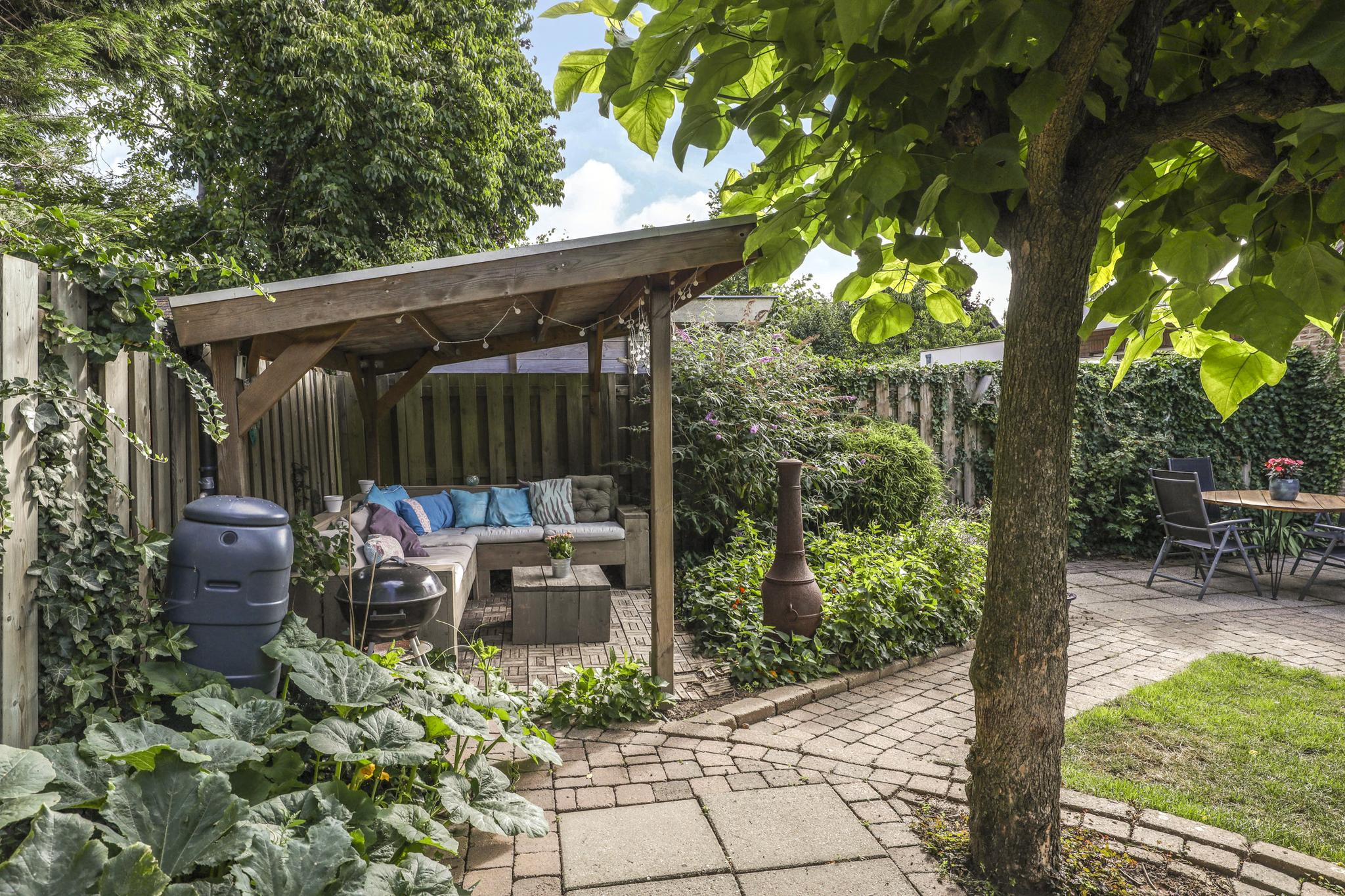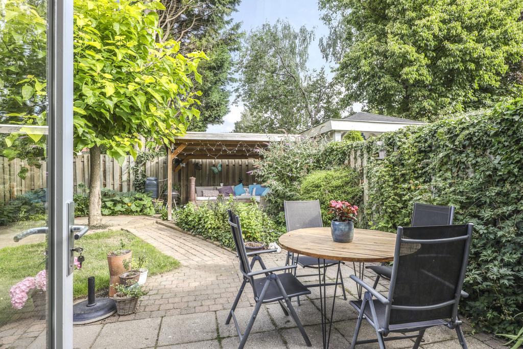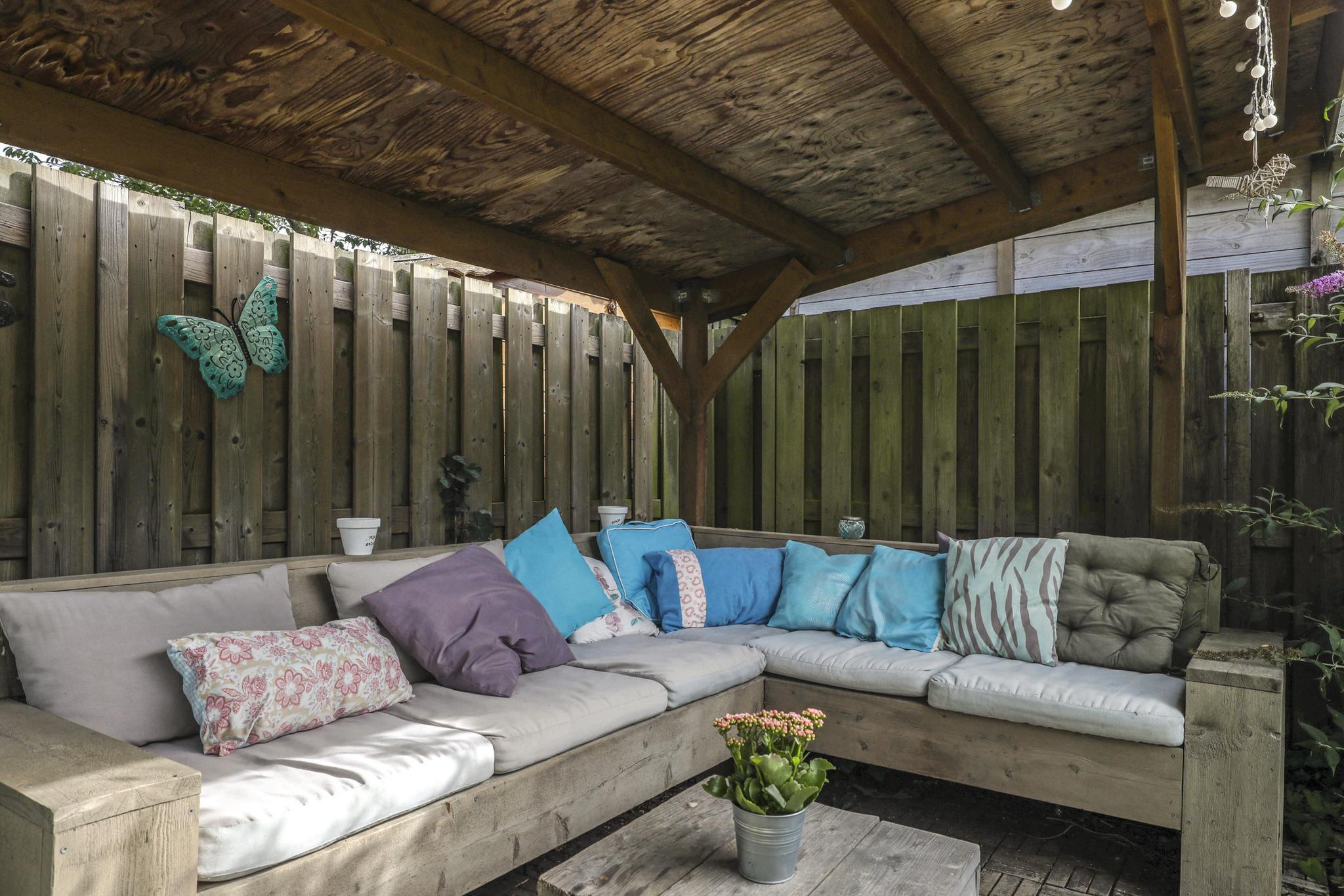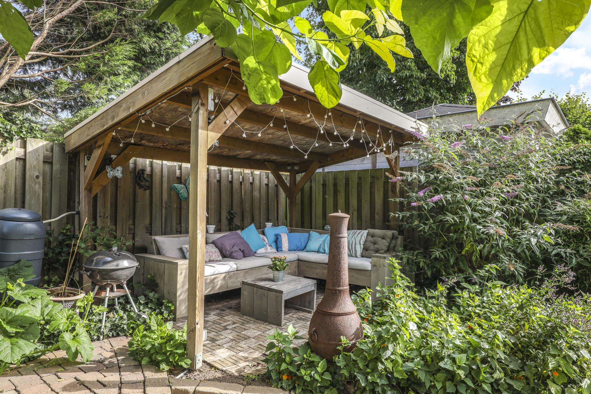 Bij de woning hoort een zonnige, sfeervolle achtertuin met veel privacy. Onder de veranda kan je heerlijk beschut zitten. Tevens heb je een inpandige ‘garage’ met o.a. de witgoedaansluitingen. Voor de garage ligt een diepe oprit welke deels is overdekt met een carport waardoor je de auto altijd op eigen terrein parkeert. De woning ligt aan een doodlopend hofje met voldoende parkeergelegenheid en een speeltuin.