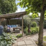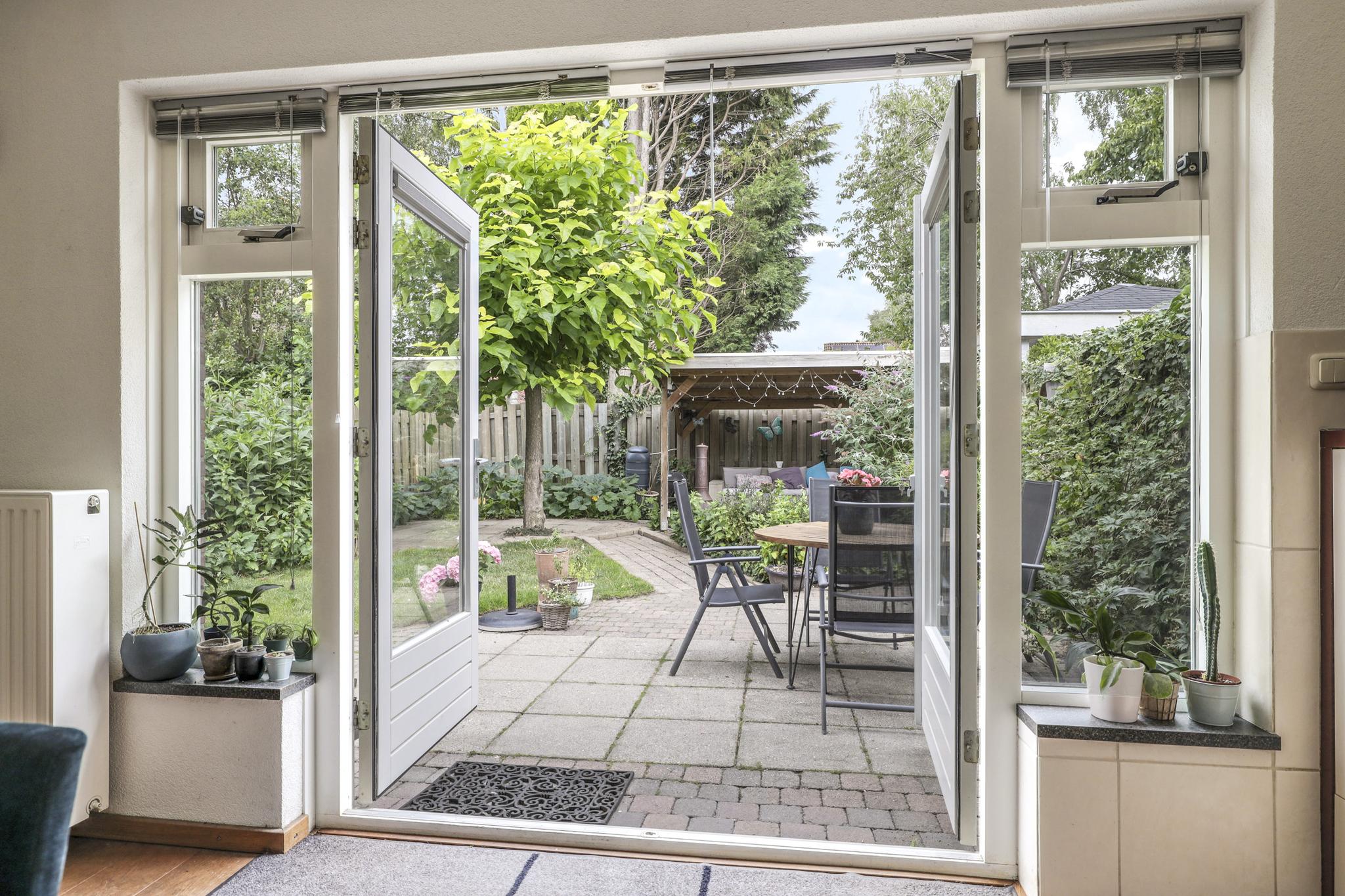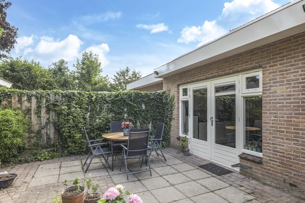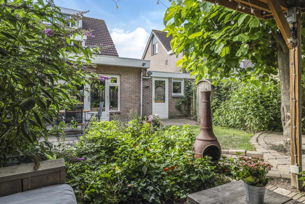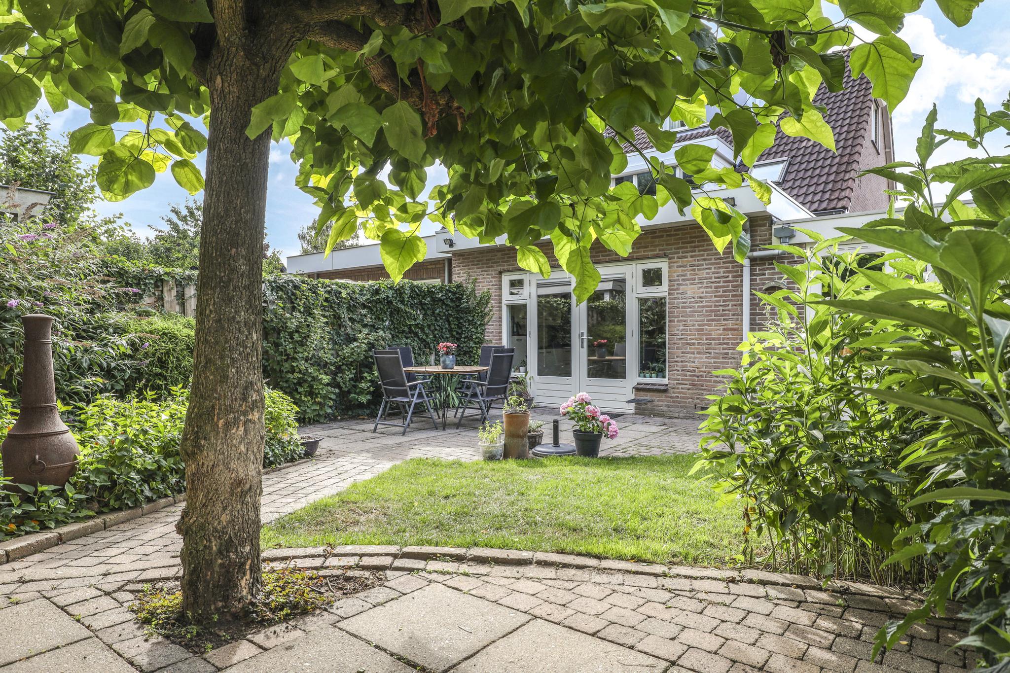 Bij de woning hoort een zonnige, sfeervolle achtertuin met veel privacy. Onder de veranda kan je heerlijk beschut zitten. Tevens heb je een inpandige ‘garage’ met o.a. de witgoedaansluitingen. Voor de garage ligt een diepe oprit welke deels is overdekt met een carport waardoor je de auto altijd op eigen terrein parkeert. De woning ligt aan een doodlopend hofje met voldoende parkeergelegenheid en een speeltuin.