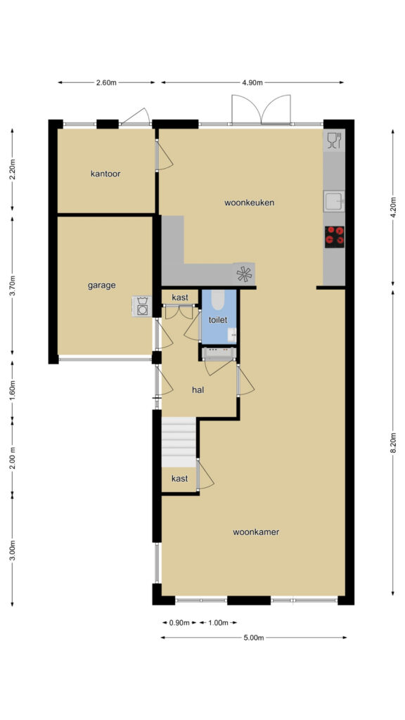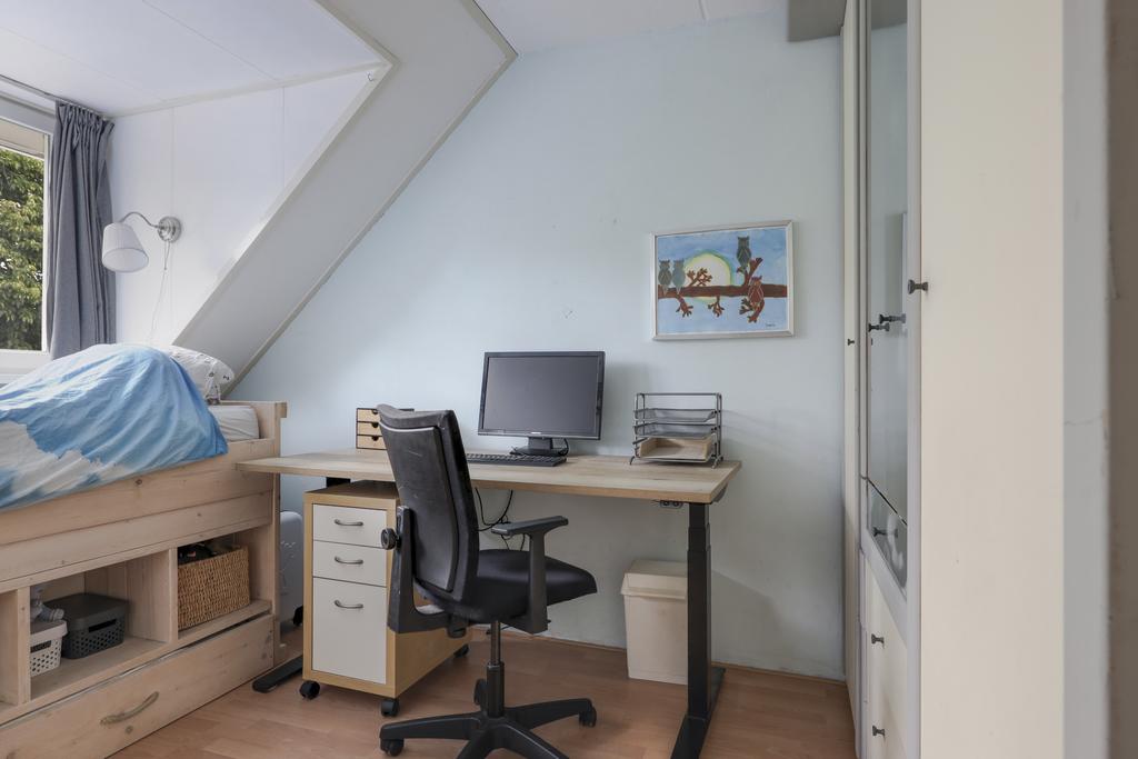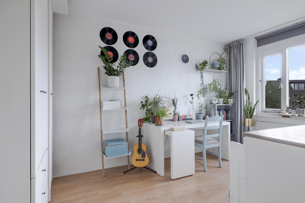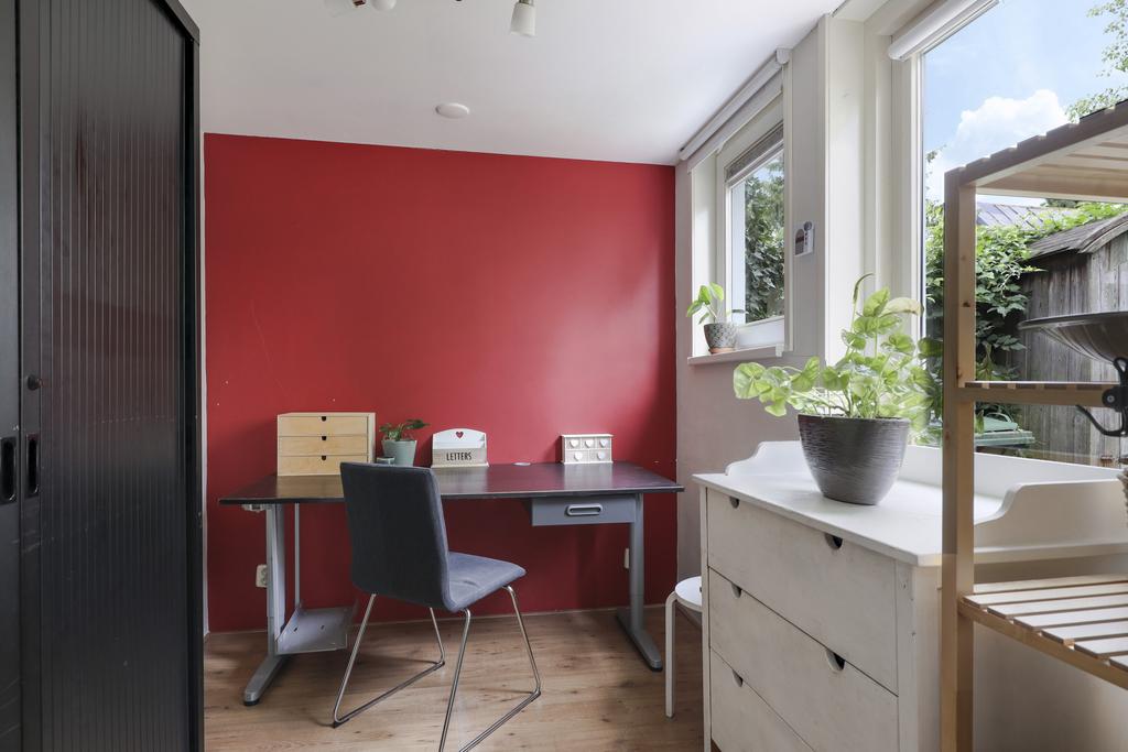 Een deel van de garage is opgeofferd om een extra werk/studiekamer te creëren. Door deze extra kamer is er een fijne plek om je even af te zonderen om rustig te kunnen werken of studeren. De kamer heeft een draai/kiepraam en een extra deur naar de achtertuin waardoor de ruimte prettig en licht aan voelt. Doordat de ruimte er later in is gemaakt, is deze tevens eenvoudig te vergroten door een groter deel van de voormalige garage erbij te betrekken mocht je meer ruimte wensen.
