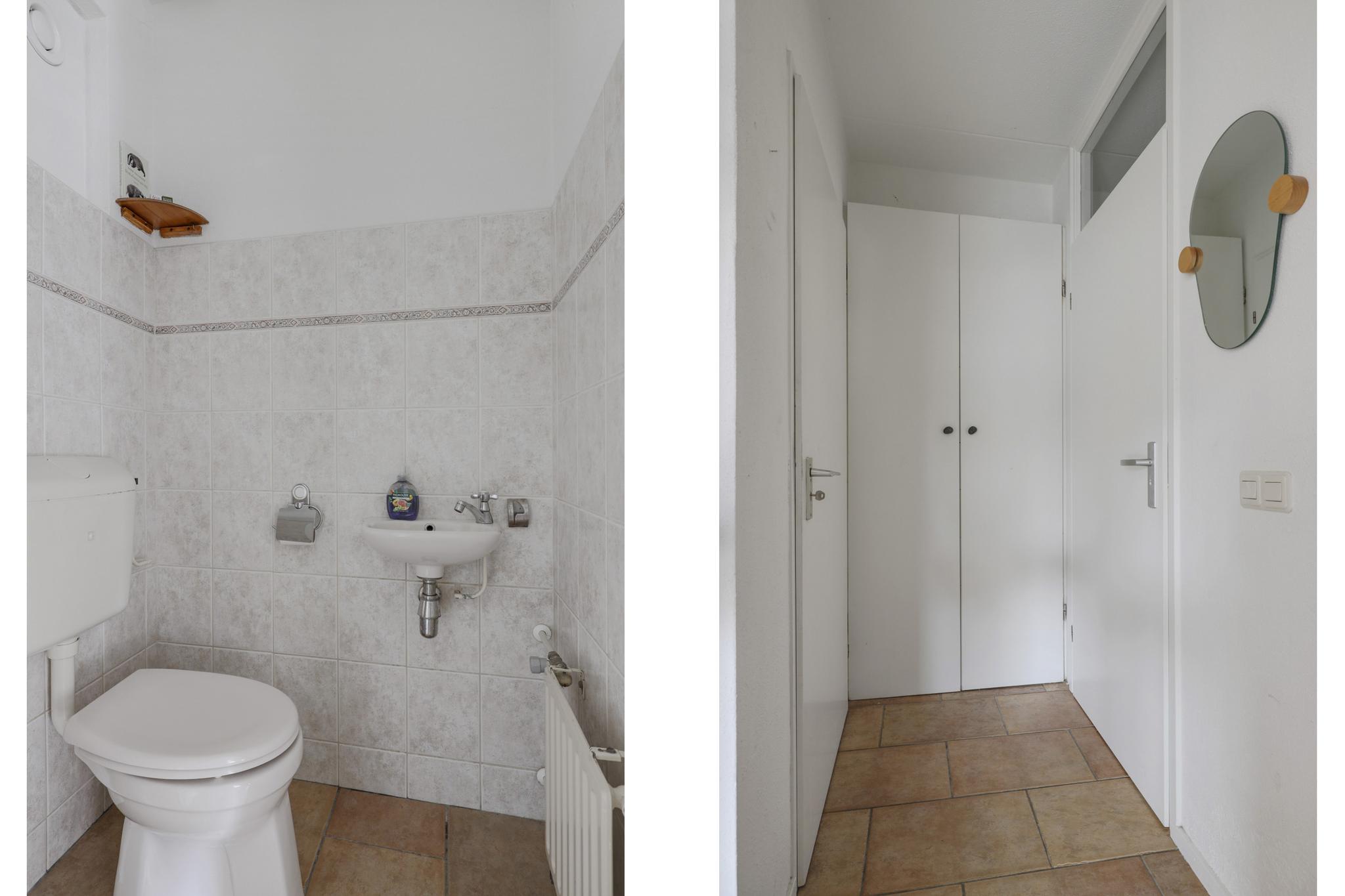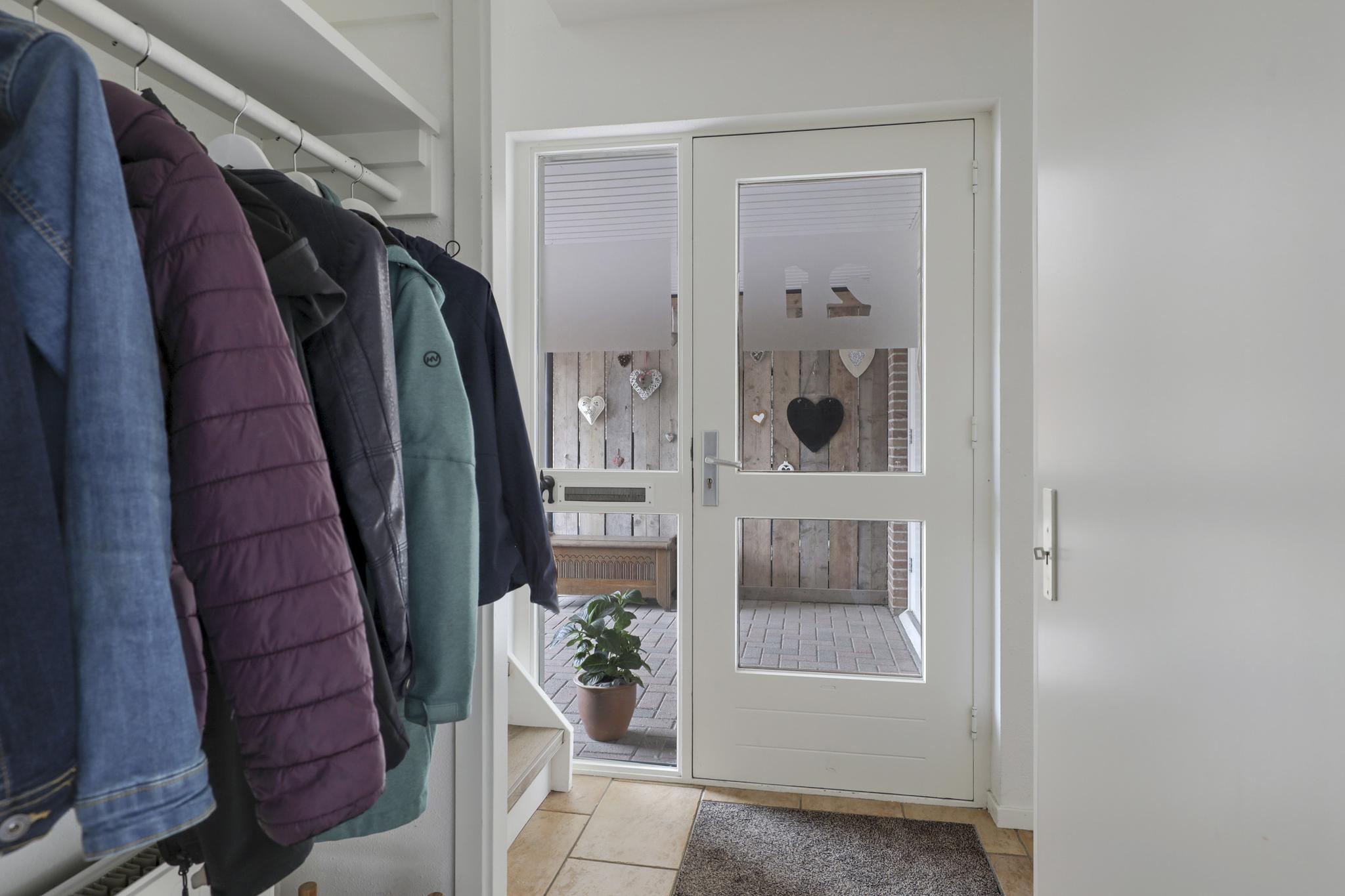 Hal/entree met meterkast, toilet, garderobenis, schoenenkast en doorloop naar ‘garage’