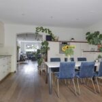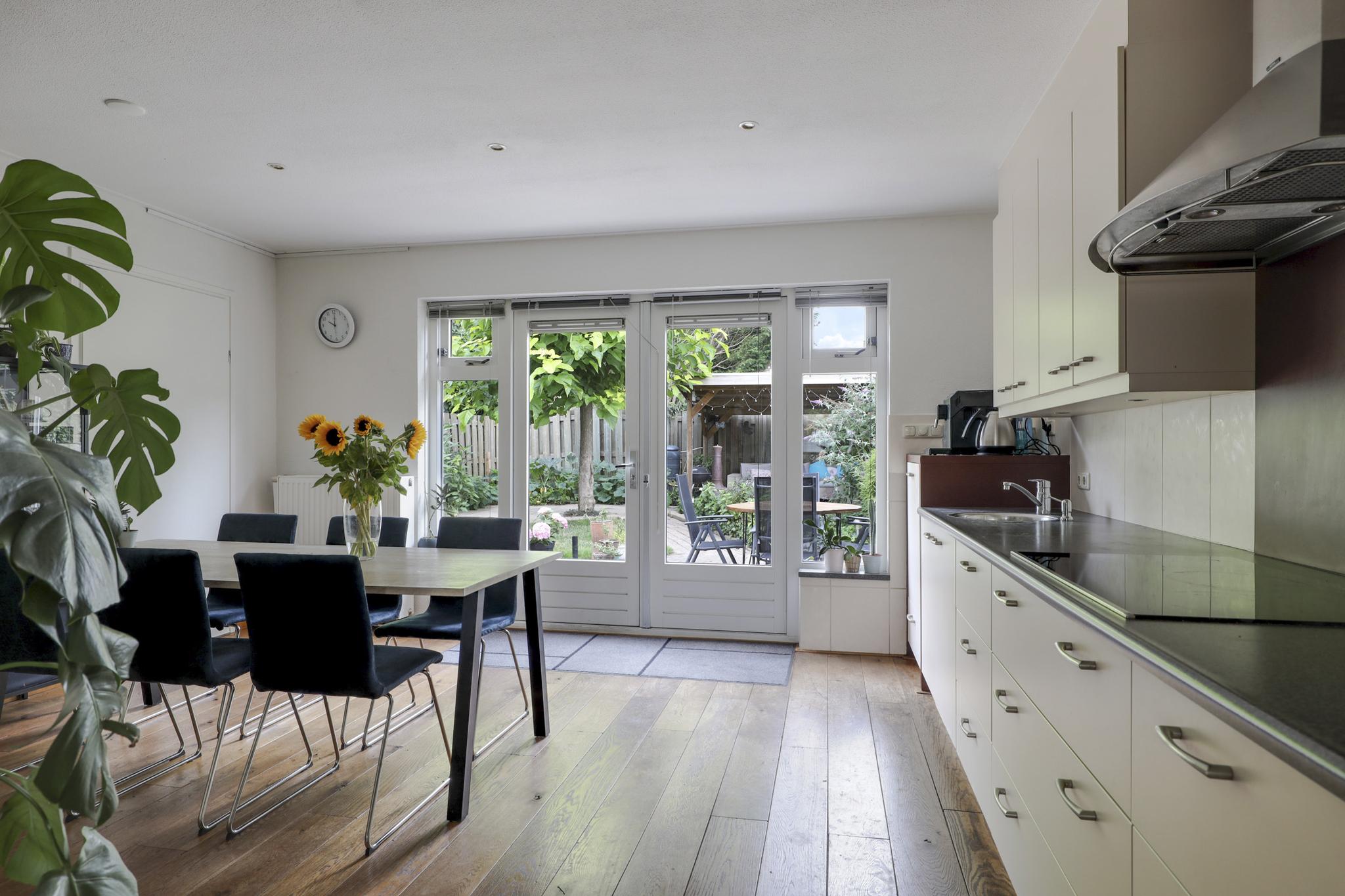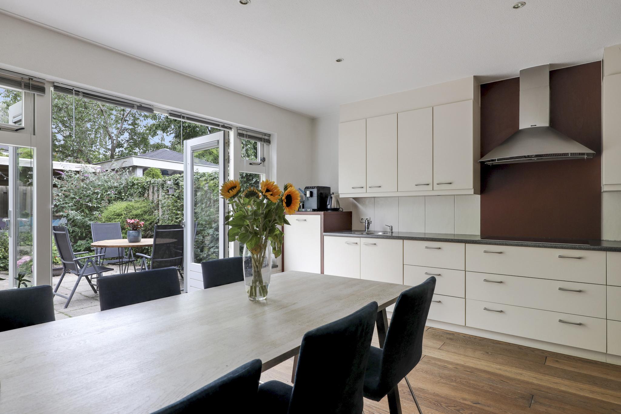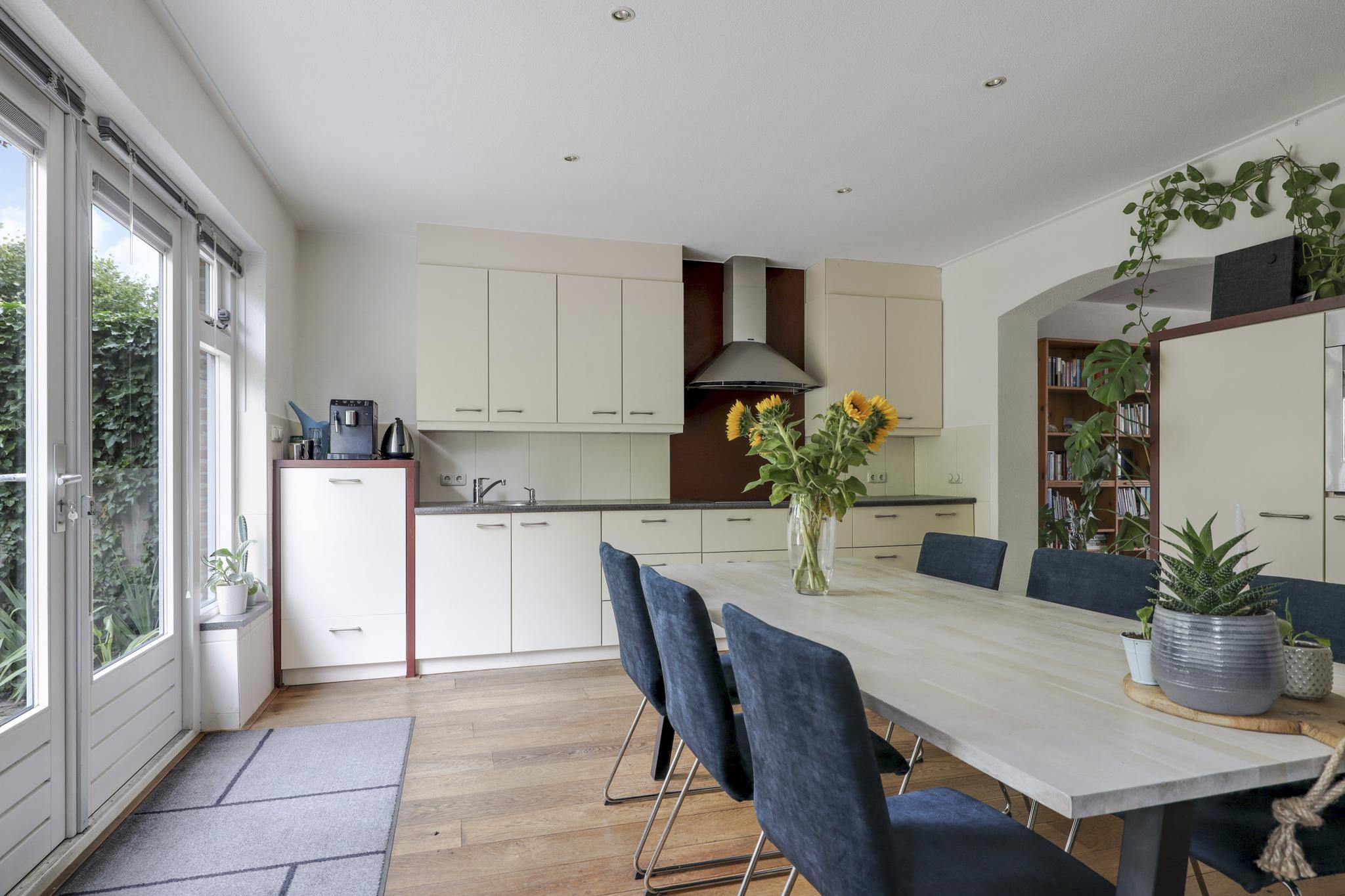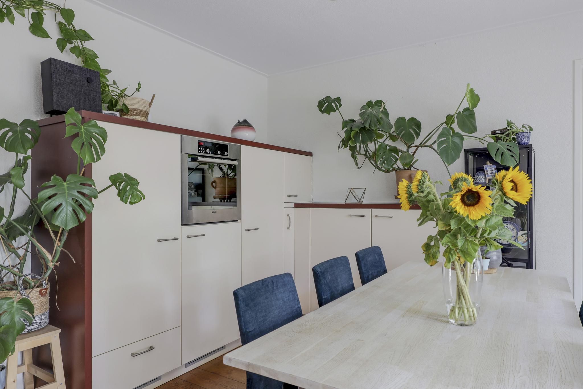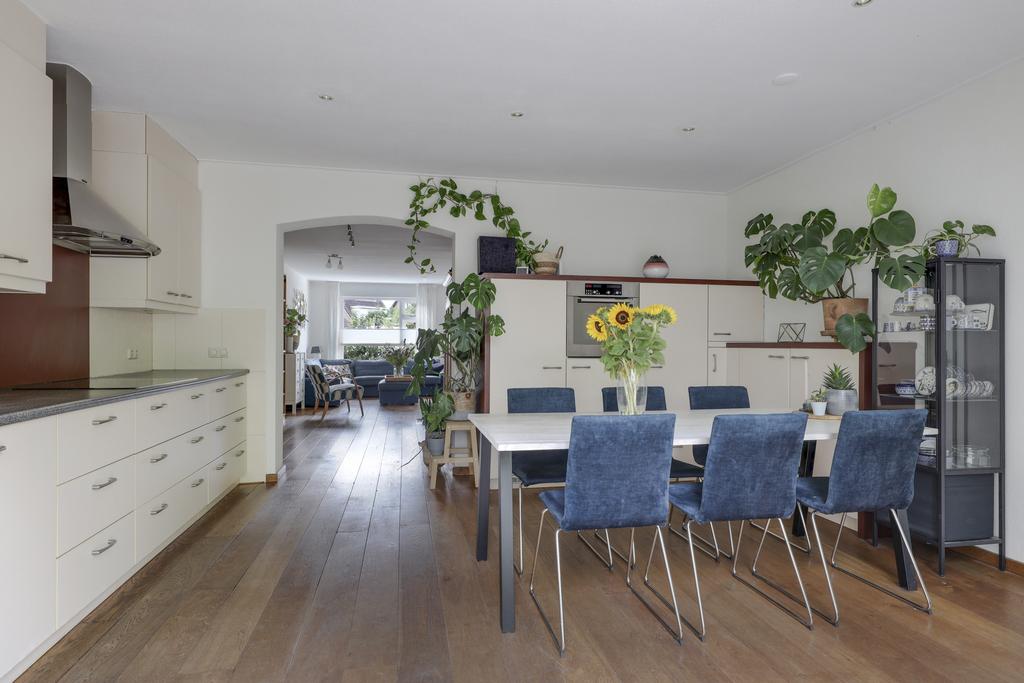 Een van de grootste pluspunten van deze woning is de riante aanbouw aan de achterzijde. Dit heeft aanzienlijk meer leefruimte opgeleverd waardoor er plaats is ontstaan voor een ware leefkeuken. Je kan hier dan ook met gemak een ruime 6-persoons eettafel kwijt. Daarbij is de keuken tuingericht waardoor je hier middels de openslaande tuindeuren direct toegang hebt tot de achtertuin.