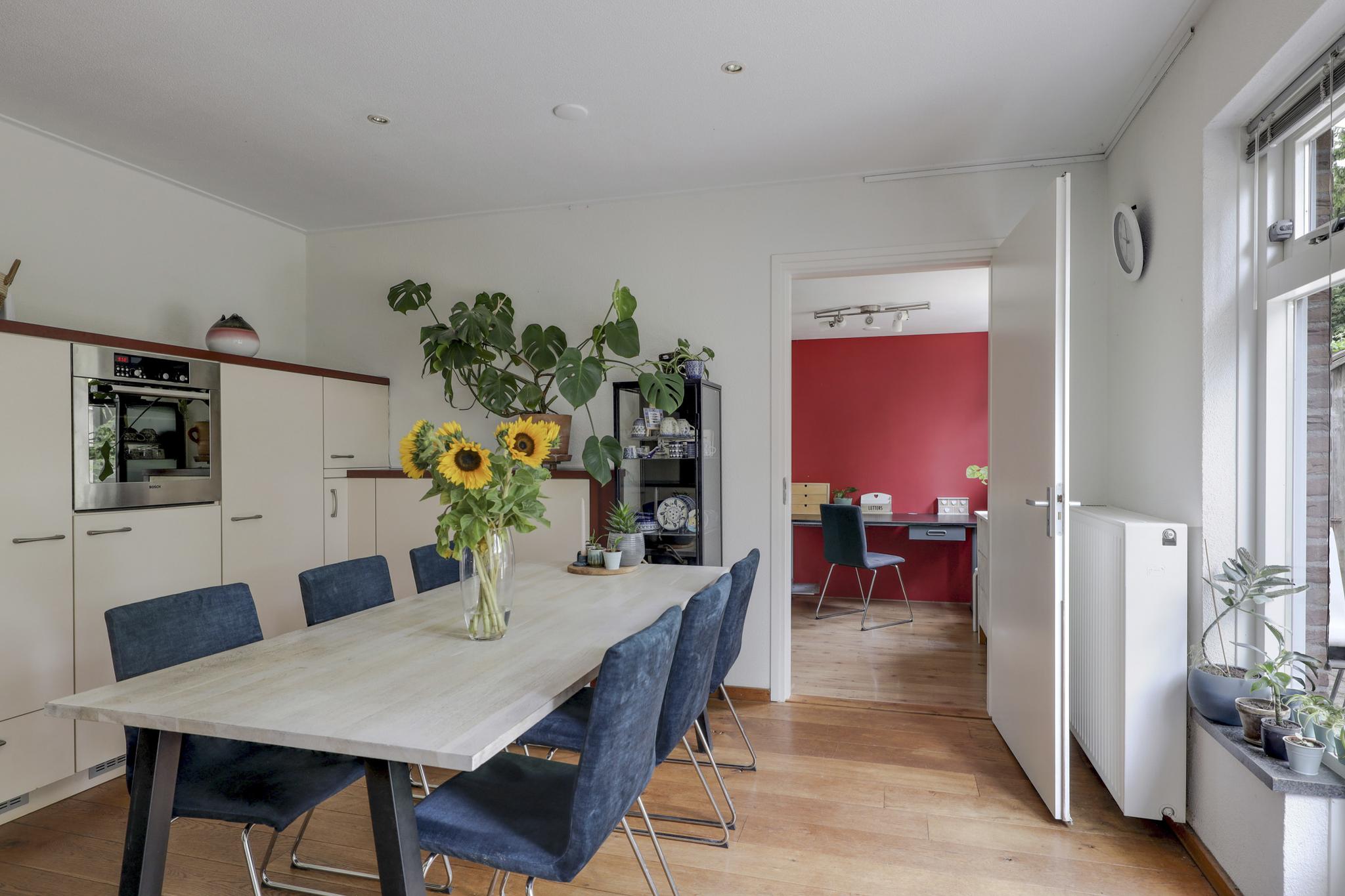 Deze woning betreft geen standaard 2-kapper meer aangezien de woning op meerdere plekken is uitgebouwd. De grootste uitbreiding is aan de achterzijde op de begane grond gerealiseerd waarbij de woning over de volle breedte is uitgebouwd. Hierdoor is er een aantrekkelijke woonkeuken ontstaan. Bovendien is de garage opgedeeld waardoor er vanuit de keuken een extra studiekamer te bereiken is.