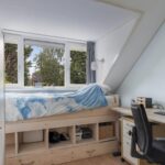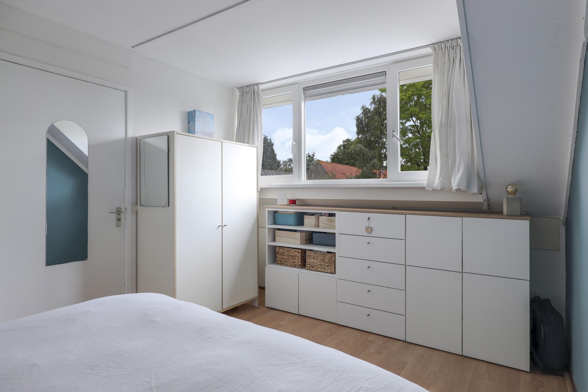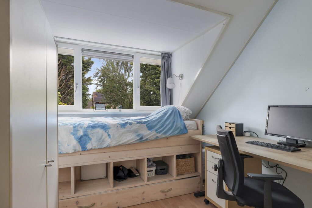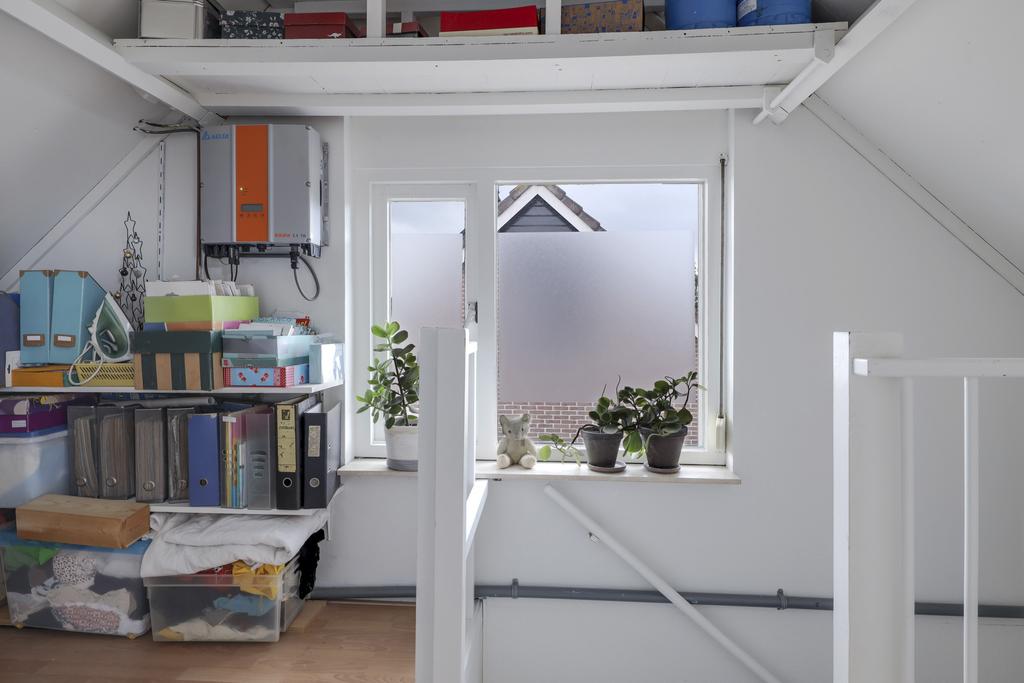 Via een vaste trap is de 2e verdieping te bereiken, dit is een volwaardige woonlaag doordat de nokhoogte op ca. 3 meter ligt. Deze woonlaag is dan ook ingedeeld in een voorzolder en een 4e slaapkamer. De voorzolder heeft een kopgevelraam wat een fijne lichtinval biedt. Je treft hier naast veel opbergruimte ook de cv-ketelopstelling en de omvormer van de zonnepanelen ook een 2e witgoedaansluiting aan. De 4e slaapkamer is ca. 11m² groot (gemeten vanaf 1,5m hoogte) waardoor dit ook een volwaardige slaapkamer is. Ook hier is een dakkapel geplaatst welke is voorzien van draai/kiepramen en een verduisterend rolluik.