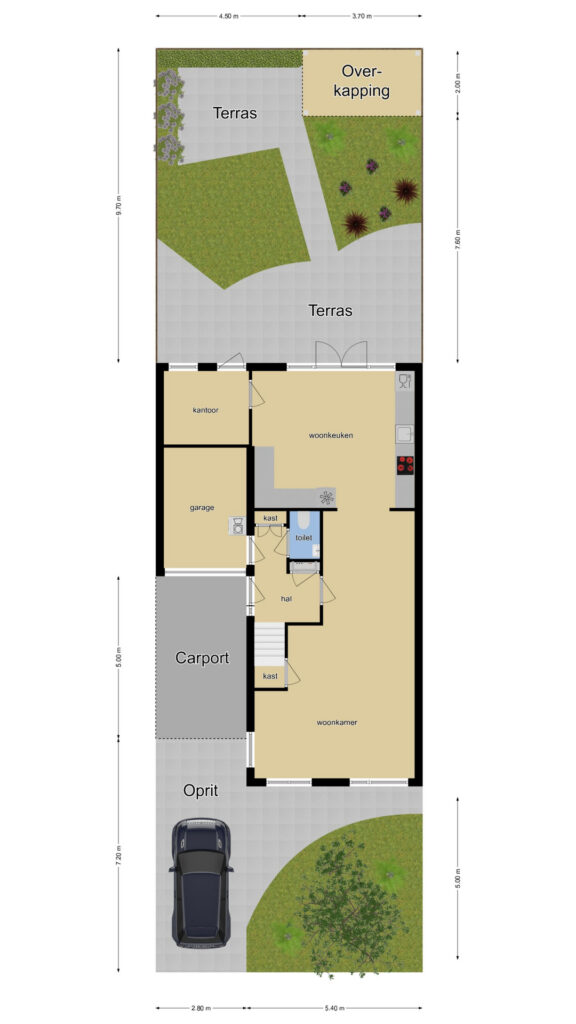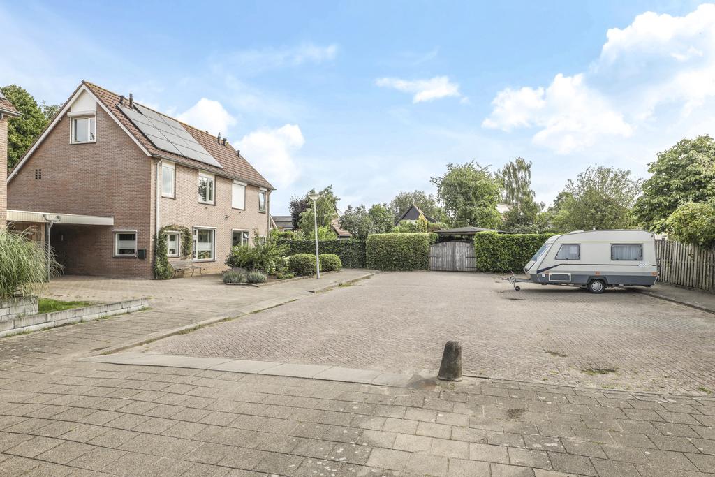 Ondanks dat de garage, geen garage meer is, kunt u uw auto nog steeds droog bij huis parkeren aangezien er voor de garage een volwaardige carport is gelegen. Samen met de buren is er gekozen voor een sfeervolle, steigerhouten scheidingswand wat ten goede komt aan de algehele uitstraling.