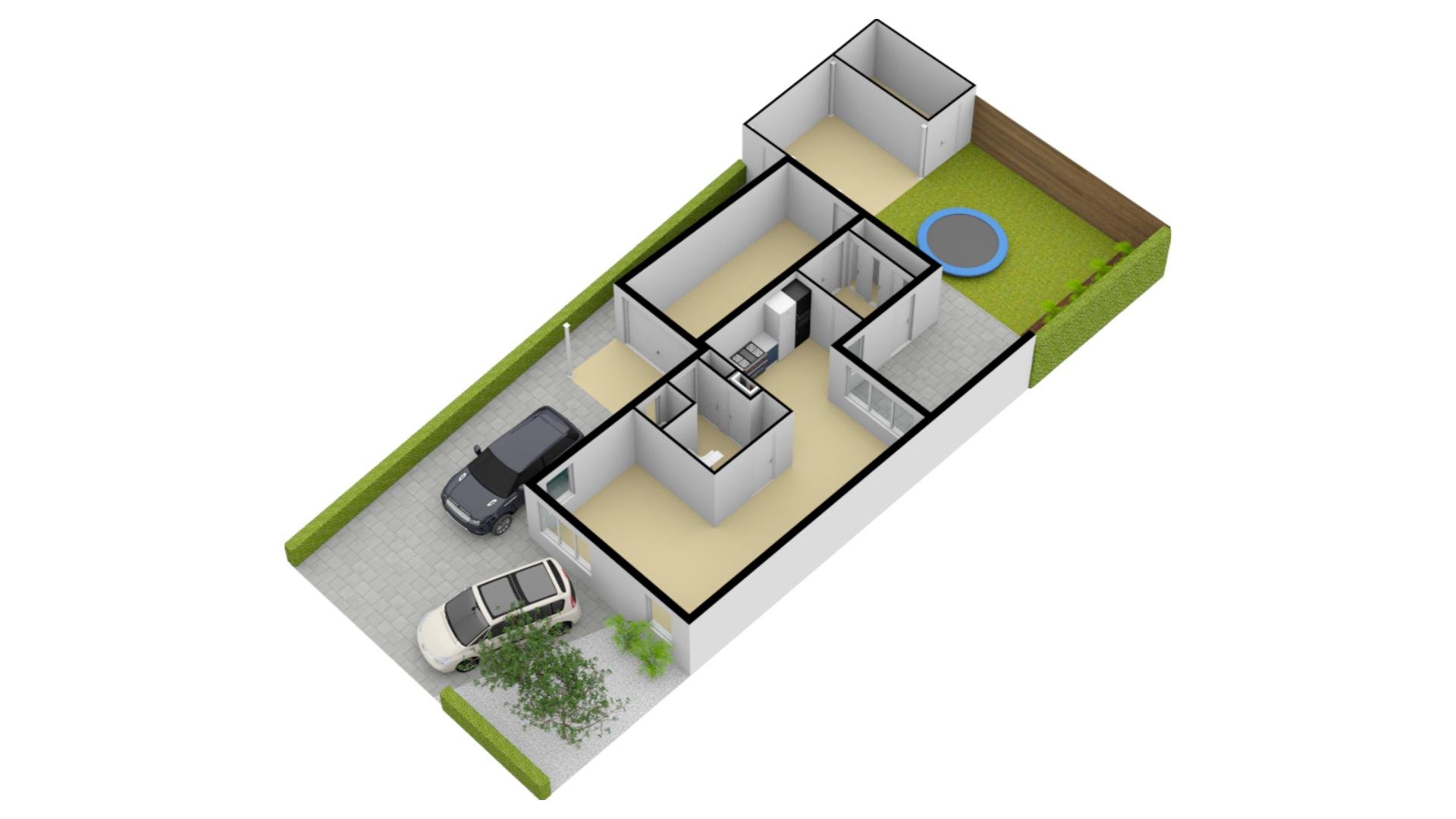 Het kunstgras met ingebouwde trampoline zal met name bij kinderen in de smaak vallen. Verder zit je relatief vrij in de tuin, mede door de leilindes die voor een groene buffer met de achterburen zorgen.