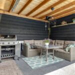 In 2021 heeft de tuin een extra dimensie gekregen doordat er een stijlvolle veranda en schuur is bijgebouwd. Deze zijn in douglashout uitgevoerd, iets wat we vandaag de dag steeds vaker tegen komen. Daarbij is er aandacht besteed aan de details waaronder degelijke poeren in de grond en regenpijpen en wandcontactdozen die in zwart zijn uitgevoerd waardoor ze minder opvallen.