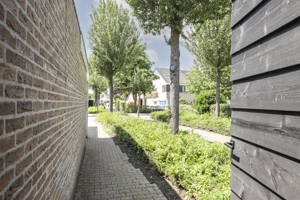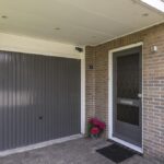 Via een zijdeur in de veranda loop je via een zijpad (achterom) langs de garage naar de oprit en voortuin.