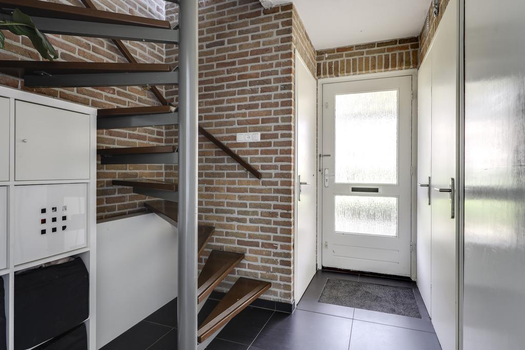Hal/entree met meterkast, schoenenkast, vaste schuif/kastenwand, toilet en trapopgang