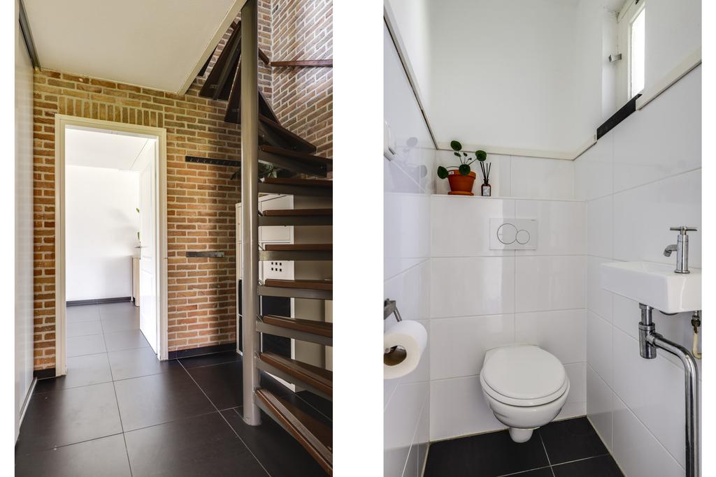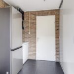 Het is prettig binnenkomen in deze woning. De hal krijgt van ons niet altijd een eigen alinea, maar we vertellen er toch graag meer over. Met een uitgebreide groepenkast, een aparte inbouw/schoenenkast én een vaste schuif/kastenwand heeft immers net even iets meer te bieden dan gemiddeld. Door de vele kastruimte kun je de hal netjes houden en jassen en schoenen keurig uit het zicht opbergen. Natuurlijk vinden we hier ook het (zwevend) toilet die met modern sanitair is afgewerkt. En ondanks al die kastruimte, voelt de hal nog steeds ruimtelijk aan doordat de ruimte onder de open spiltrap voor een extra buffer zorgt.