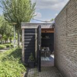 De veranda (14m2) biedt ruimte aan een comfortabele loungeset. Onder hetzelfde dak vind je een schuur (8m2) die voor extra opslagruimte zorgt. Ook deze is voorzien van elektra.
