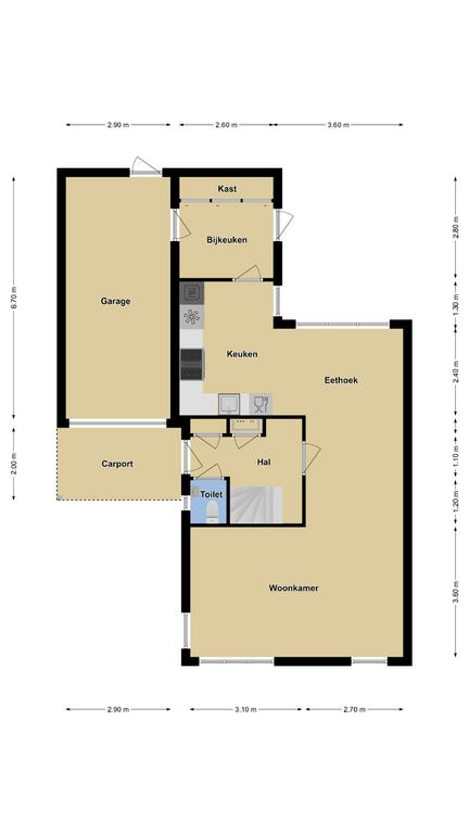 Aan de voorzijde is een comfortabele oprit gelegen met plaats voor 3 auto’s op eigen terrein waarvan er 2 naast elkaar kunnen staan. De ‘halve’ carport voor de garage is erg praktisch, mede doordat je bij de voordeur altijd droog staat.