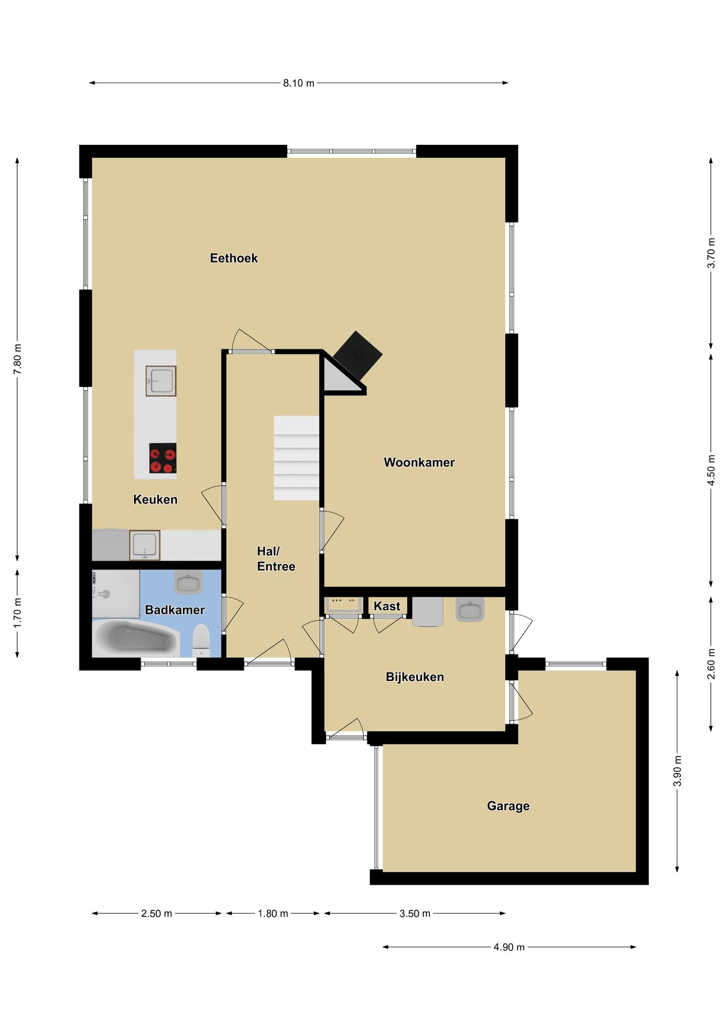 Ca. 135m2 woonoppervlak (excl. inpandige garage)