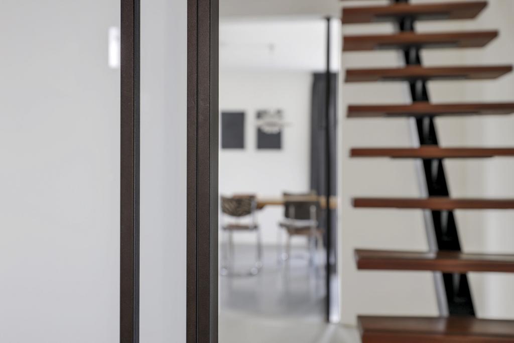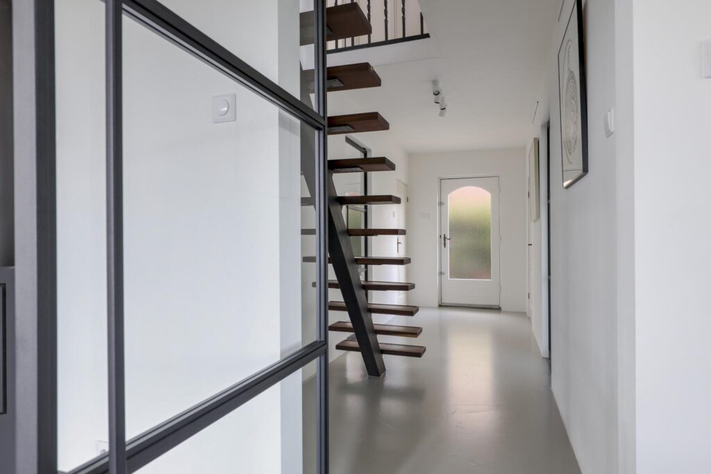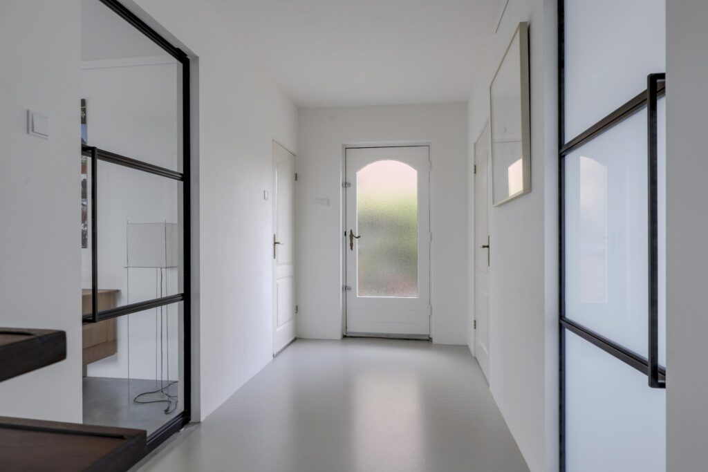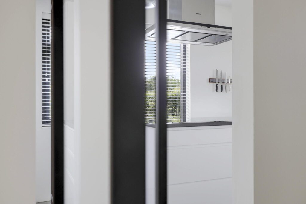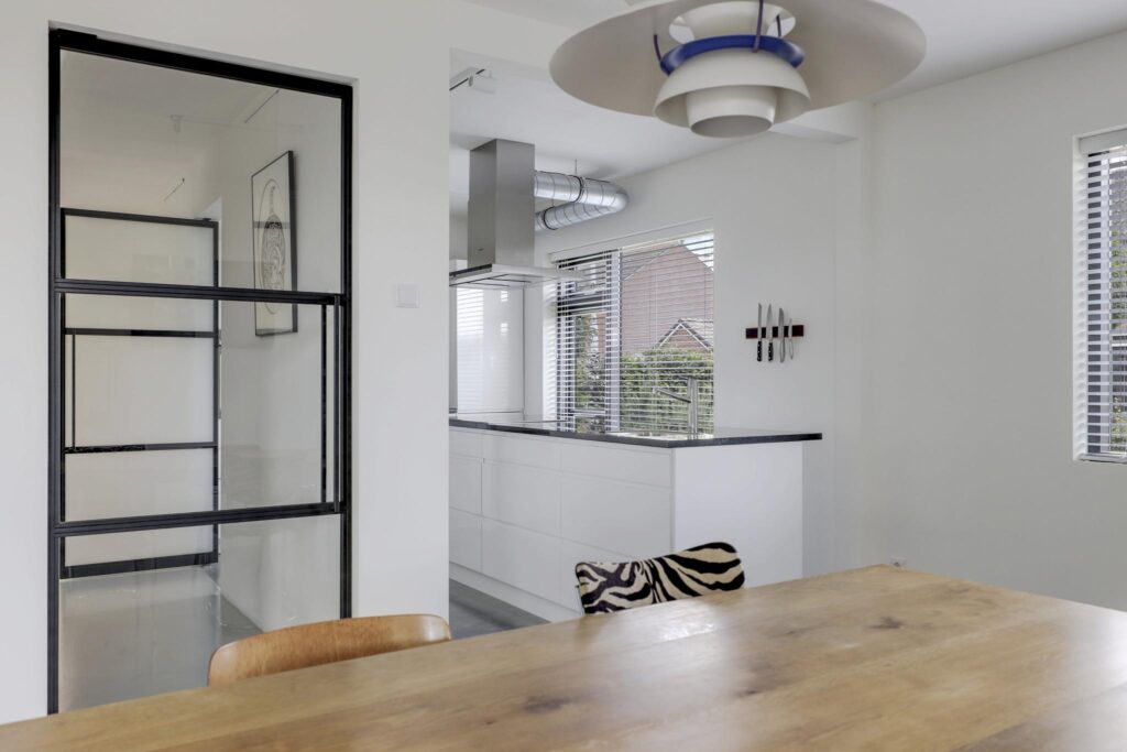 Stalen deuren tussen de living/keuken en de hal