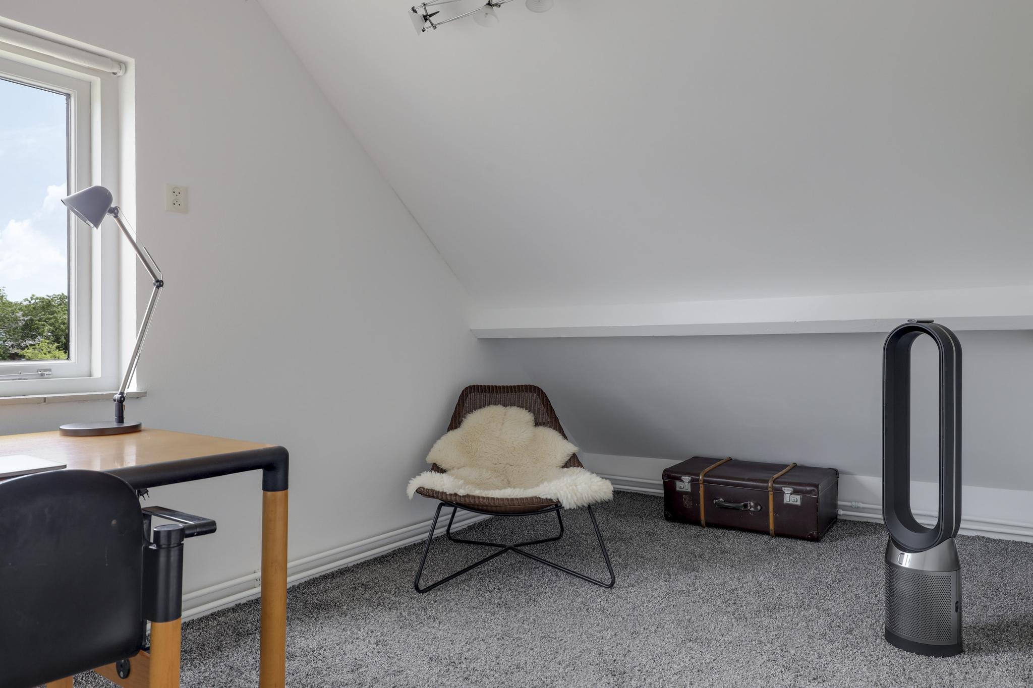 Via een luik op de overloop is de bergzolder te bereiken. Hier vind je in de nok van de woning nog veel opbergruimte terug. Aan een zijde is dit opengemaakt om een loft te creëren. Echter blijft er voldoende opbergruimte over.