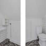 Via de stijlvolle, moderne trapopgang komen we op de 1e verdieping terecht. Op deze verdieping wordt het nogmaals duidelijk dat het hier geen kleine woning betreft. De overloop is zeer ruim opgezet. Aan de overloop grenzen 4 slaapkamers, een ruime vaste kast met opbergruimte en een toilet met wastafel. De slaapkamers zijn respectievelijk 11,5m2, 11,5m2, 8m2 en 8m2 groot. Dit is gemeten vanaf 1,5m hoogte waardoor de slaapkamers in werkelijkheid nog groter zijn. Vanaf een slaapkamer is de vide te bereiken, waardoor deze slaapkamer een ware loft is geworden.