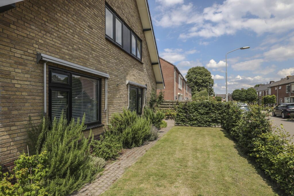 Het huis staat aan de rand van het dorp op een mooi perceel van 300m2 groot. De tuin is groen aangekleed met veel gras en diverse planten en struiken. Aan de voorzijde is een comfortabele oprit met plaats voor 2 auto’s gelegen.