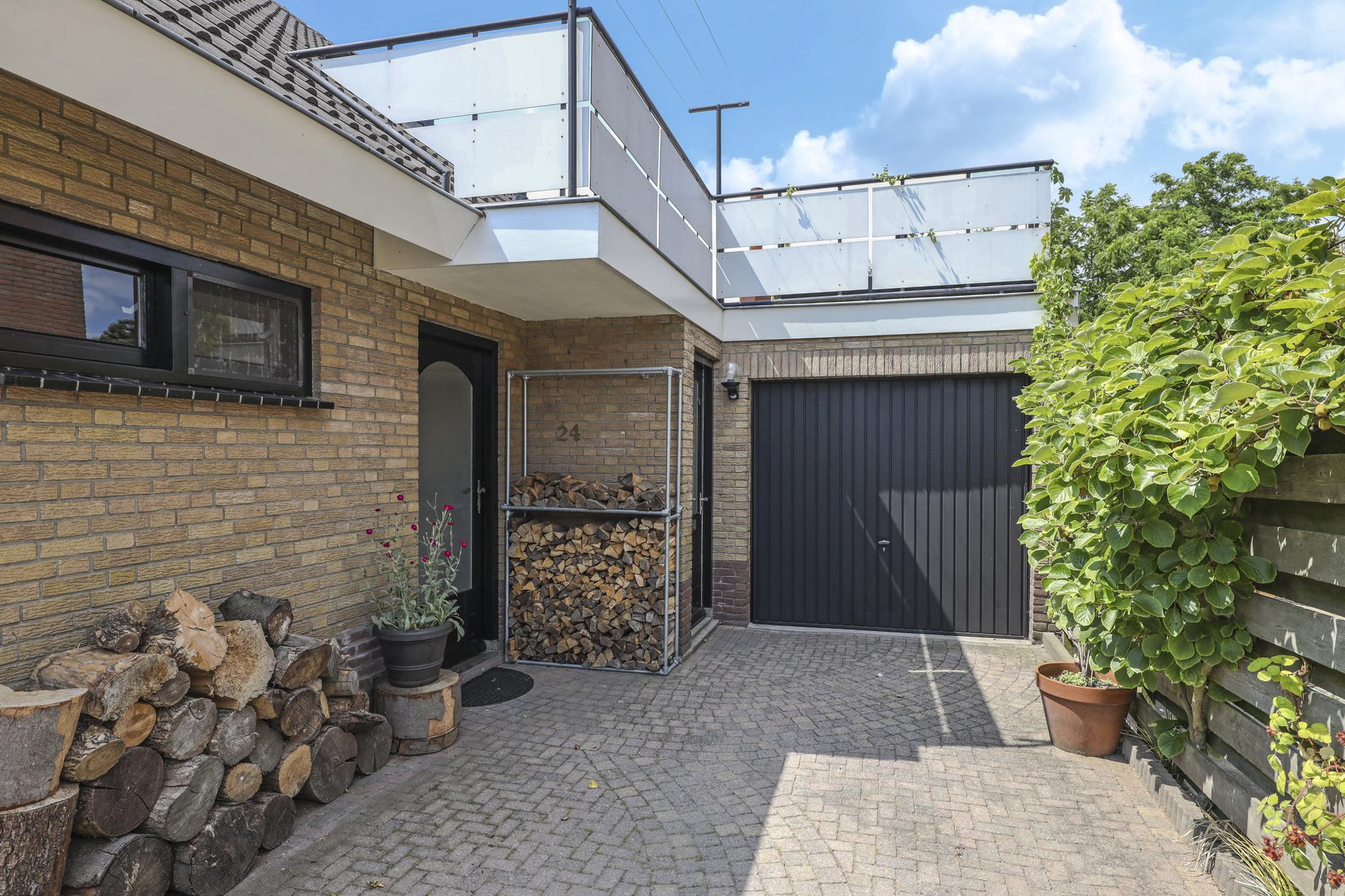 Aan de woning is een ruime garage gebouwd. De garage loopt in een L-vorm waardoor er veel ruimte aanwezig is. De auto wordt niet vaak meer in de garage geparkeerd waardoor er ruimte overblijft voor bijvoorbeeld het stallen van de fietsen en/of motor. Ook een klusser kan hier een fijne werkruimte maken. Daglicht is aanwezig waardoor de ruimte aangenaam aanvoelt. De garage is binnendoor te bereiken via de bijkeuken. Een kanteldeur geeft toegang richting de oprit.
