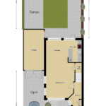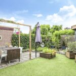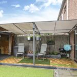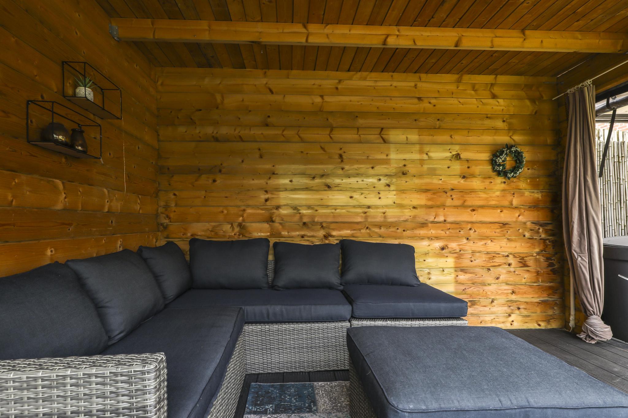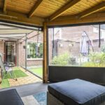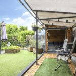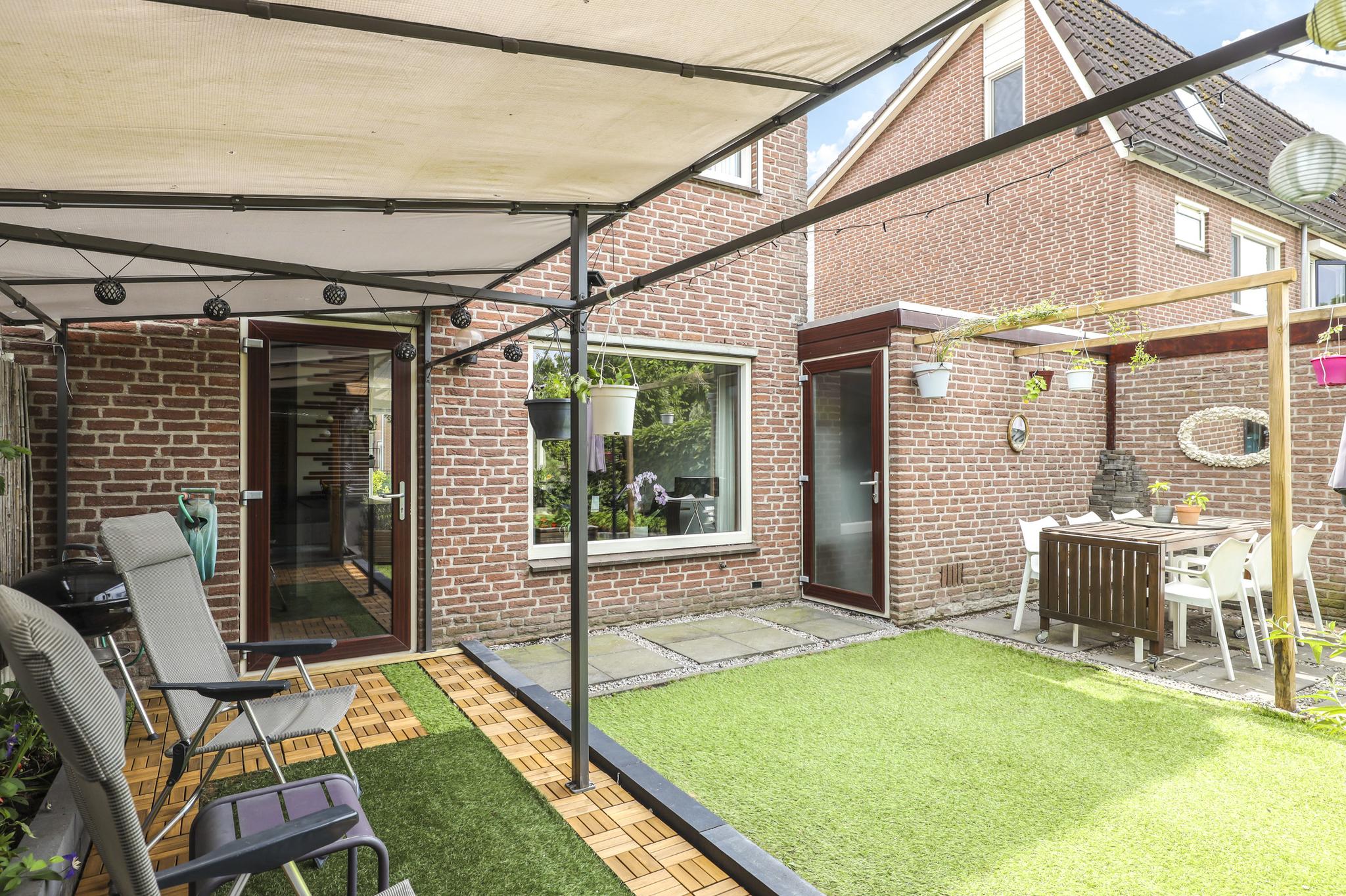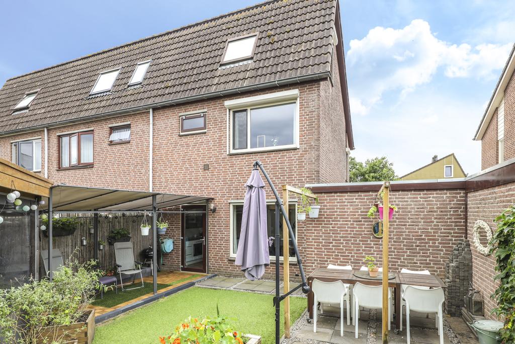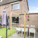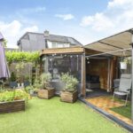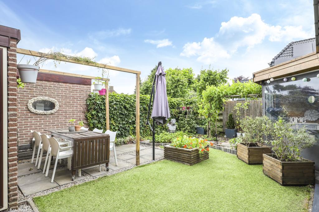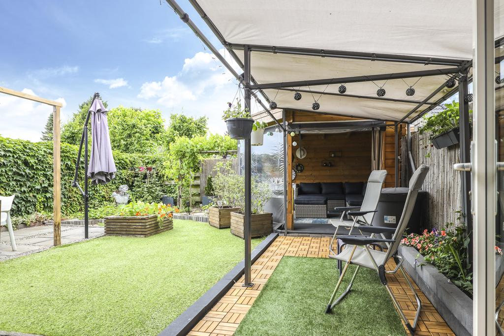 Bij een volwaardige gezinswoning hoort ook een comfortabele achtertuin. De tuin heeft een bijna vierkant formaat van ca. 9 bij 9 meter. In de hoek van de tuin is een gezellige veranda geplaatst waar je heerlijk beschut kan zitten. Deze veranda is geheel af te sluiten zodat je ook in het voor- en najaar langer buiten kunt genieten. Tussen de woning en de veranda is zelfs nog een extra overkapping geplaatst. Dit aluminium frame met schaduwdoeken biedt een extra schaduwplek op de hete zomerdag. De achtertuin heeft weinig inkijk waardoor je hier veel privacy hebt. Vanuit de achtertuin heb je eveneens toegang tot de garage.