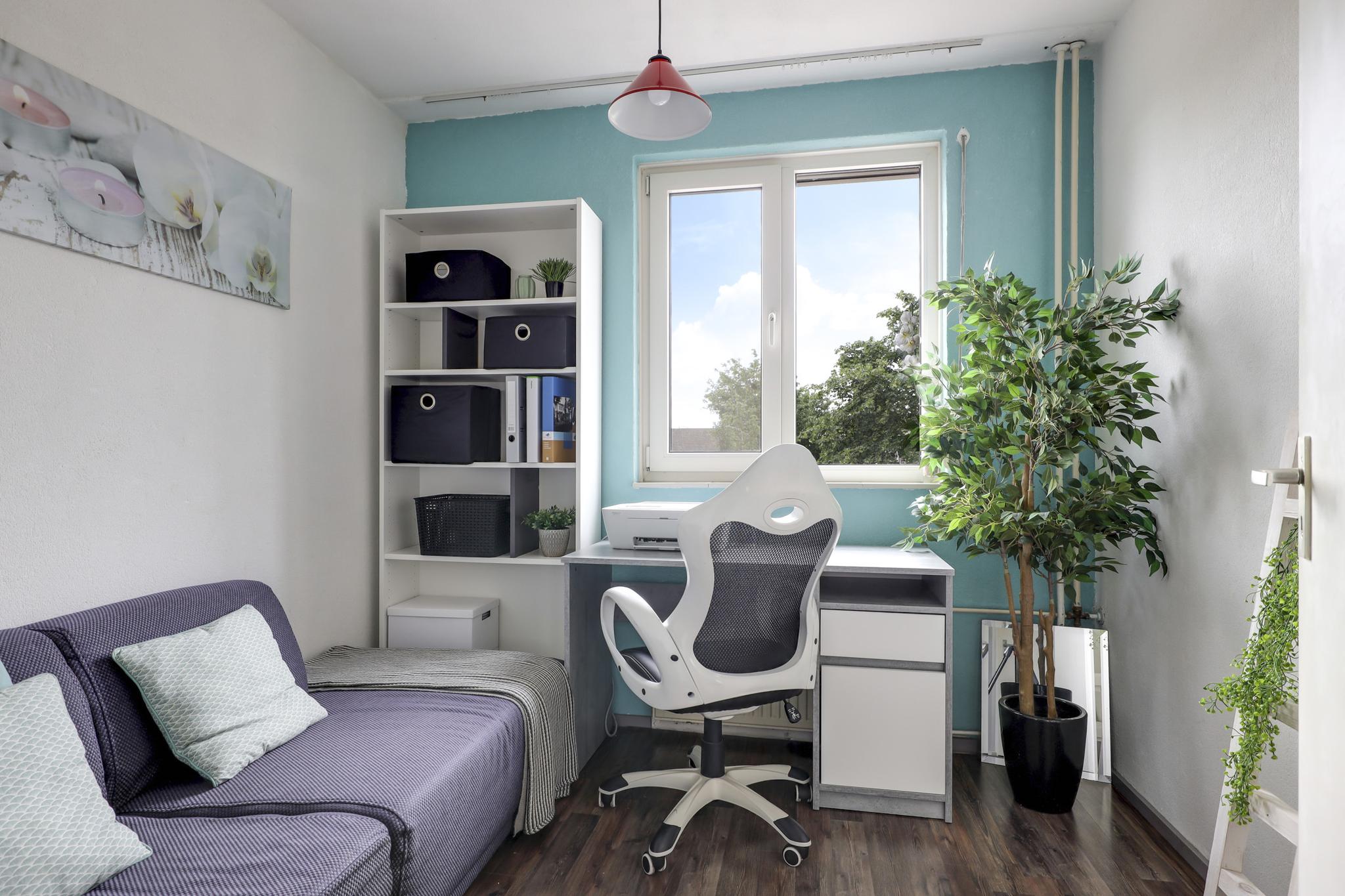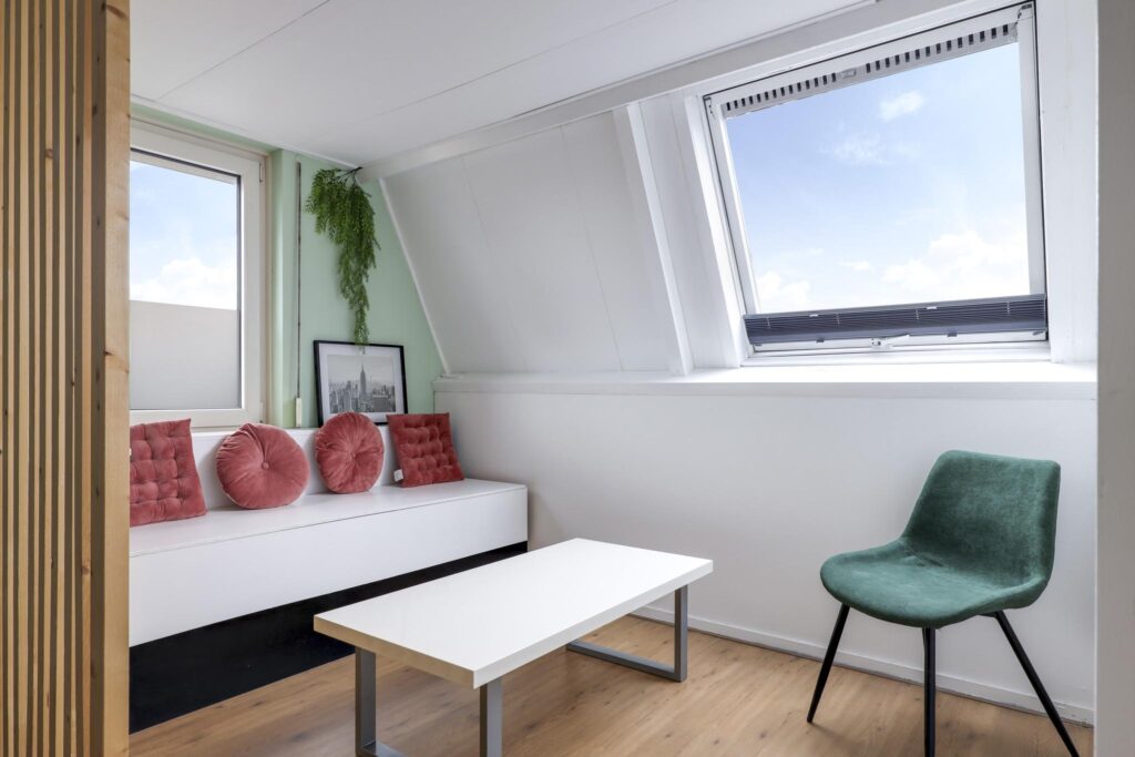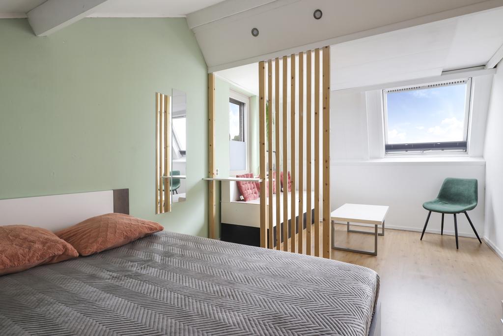 4e Slaapkamer met knieschot bergruimte, dakvenster en zijgevel raam.