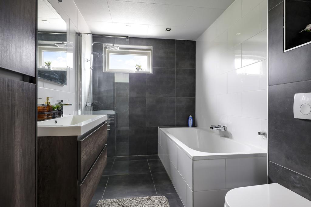 In 2020 is de badkamer volledig vernieuwd. Er is gelijk dankbaar gebruik gemaakt van de ruimte door deze compleet in te richten met o.a. een ligbad, een inloopdouche met rainshower/handdouche, een 2e zwevend geplaatst toilet en een breed 2-persoons wastafelmeubel met brede ladekorven, een bijpassende kolomkast en een spiegel. Uiteraard ontbreekt de handdoekradiator niet. De grote tegels zijn speels geplaatst in een combinatie van witte en antracietkleurige wandtegels. Een hooggeplaatst raam zorgt voor daglicht maar ook voor de ideale ventilatiemogelijkheid.