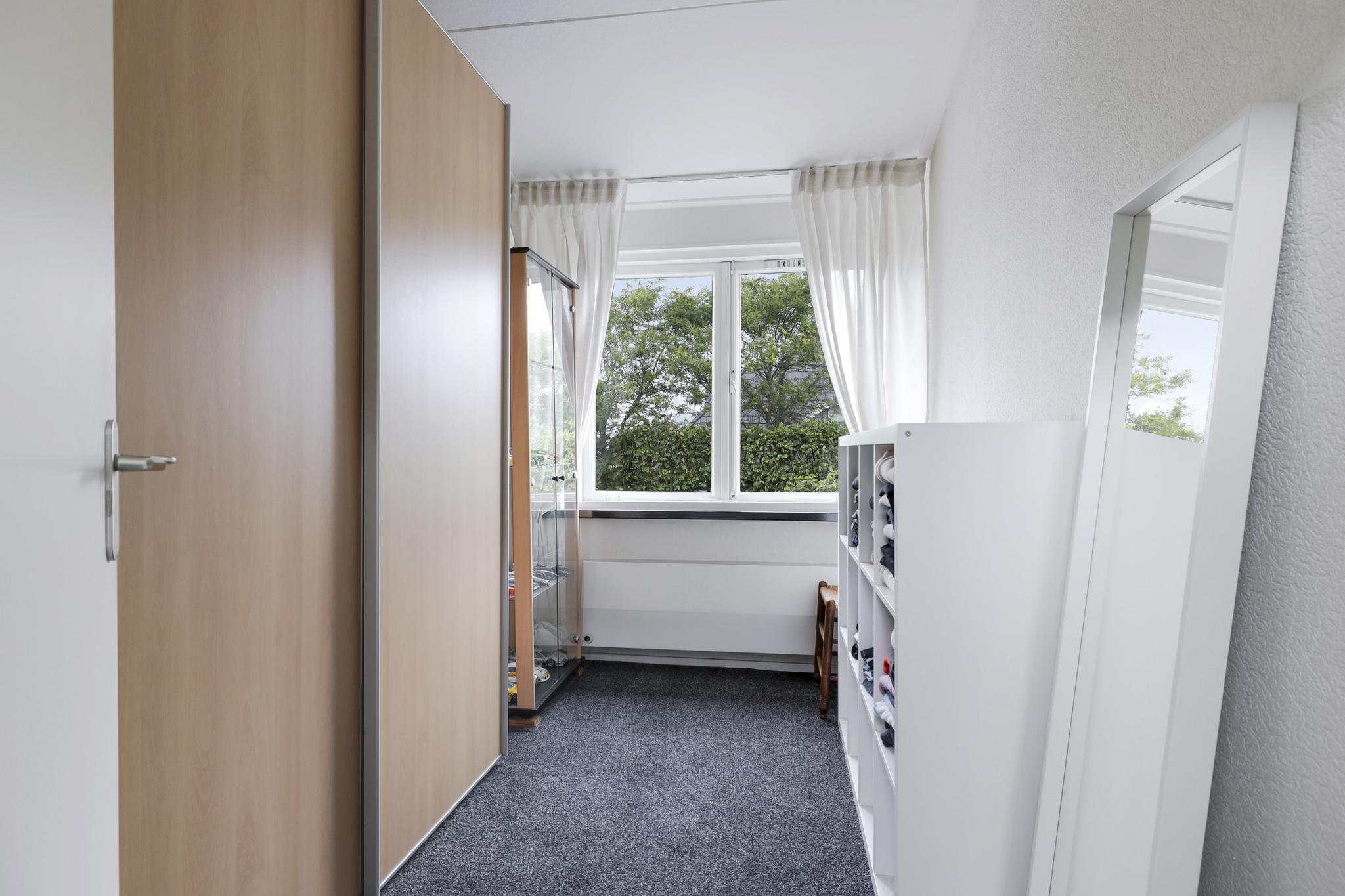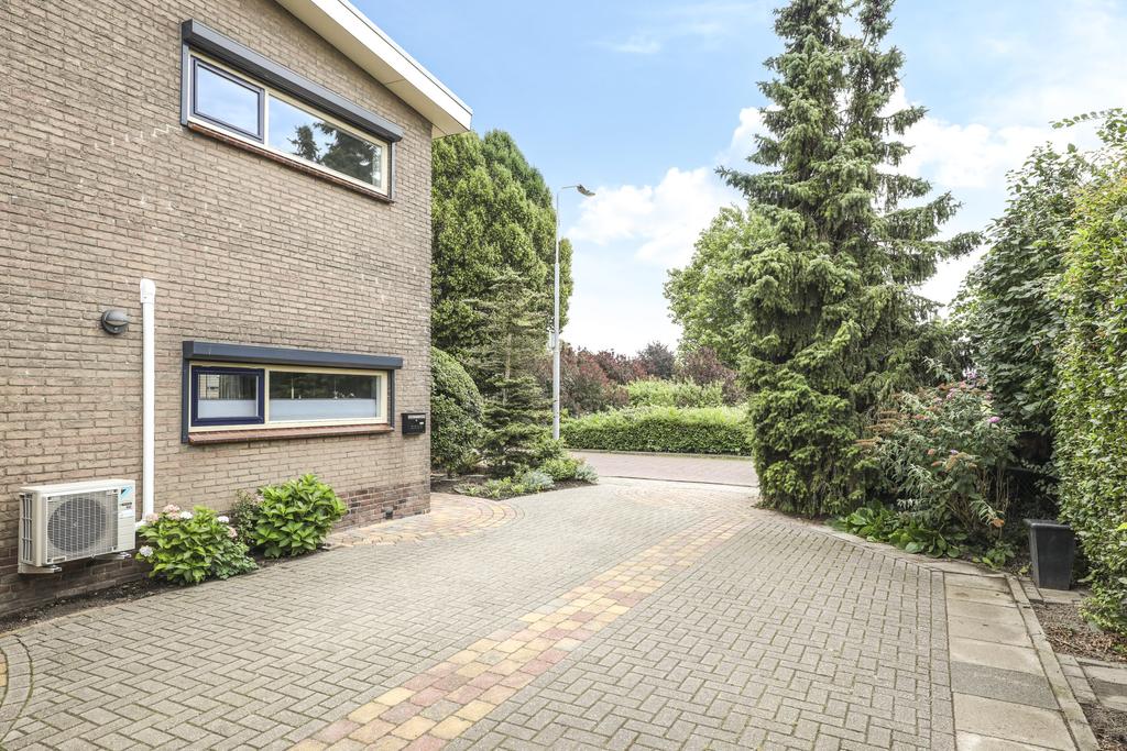 Vóór de garage is een royale oprit gelegen. Door de brede zijtuin, is er ook meer ruimte gecreëerd voor het parkeren van auto’s op eigen terrein. Je kunt met gemak 2 auto’s naast elkaar parkeren. Heb je een grote werkbus en parkeer je die graag bij huis? Hier hoef je niet te twijfelen of het wel past.