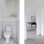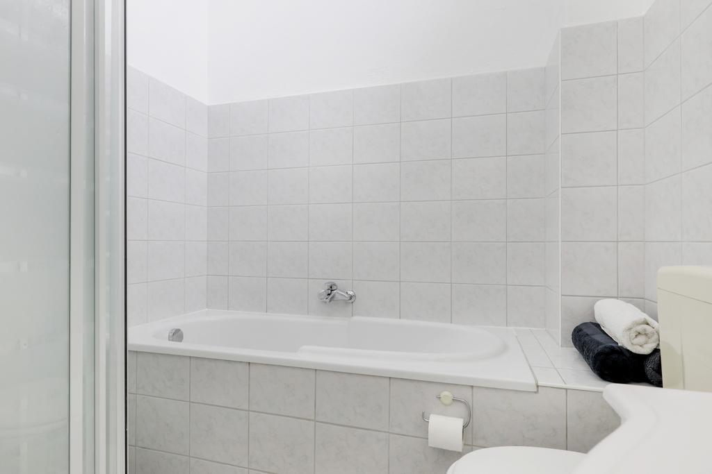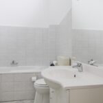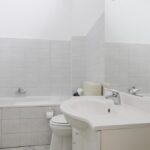 De hoogte van het lessenaarsdak met bovenlichten zie je ook weer terug op de badkamer. Het voordeel hiervan is veel lichtinval, zonder enige inkijk. Bovendien is de badkamer hierdoor optimaal in te delen en daar is dan ook dankbaar gebruik van gemaakt. Met een ligbad, een aparte douchecel, een 2e toilet en een wastafelmeubel is de badkamer compleet te noemen. Boven het wasmeubel is nog een spiegel aanwezig met daarboven aanvullende spotverlichting. Om het af te maken is er een handdoekradiator geplaatst. Verder is de badkamer degelijk, schoon en neutraal te noemen.