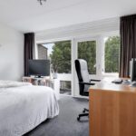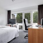Leuk element is het balkon aan de voorzijde die aan de grote slaapkamer grenst. En ook de slaapkamer ernaast (aan de voorzijde) heeft iets extra’s, namelijk een brede zijgevel met een panoramische view over het Betuwse landschap. Alsof er een schilderij aan de muur hangt…