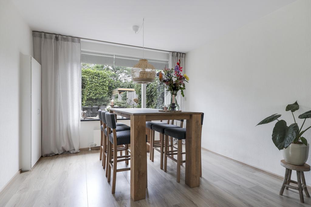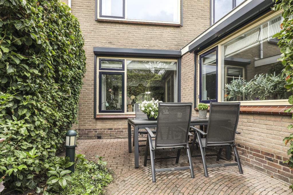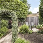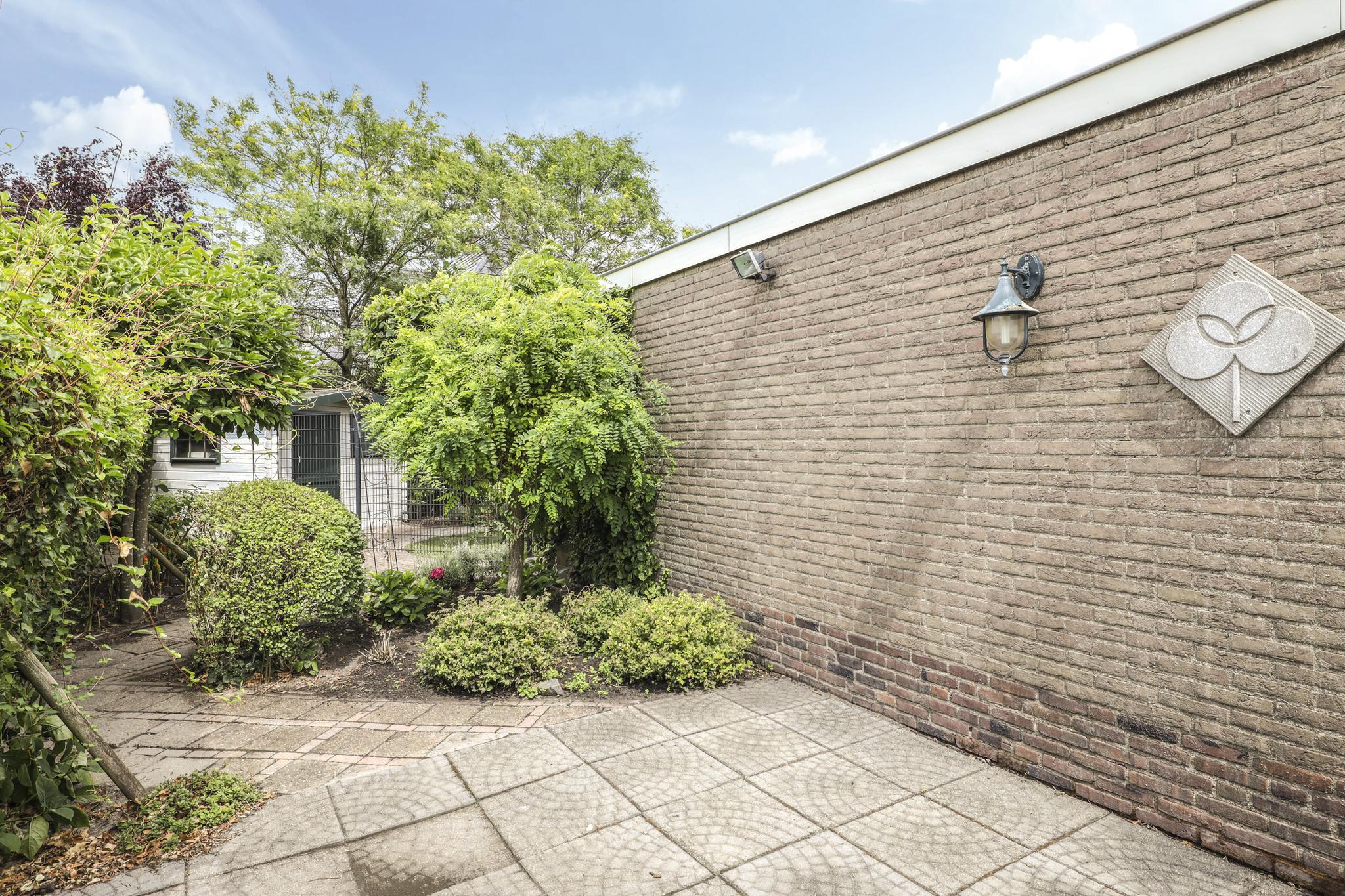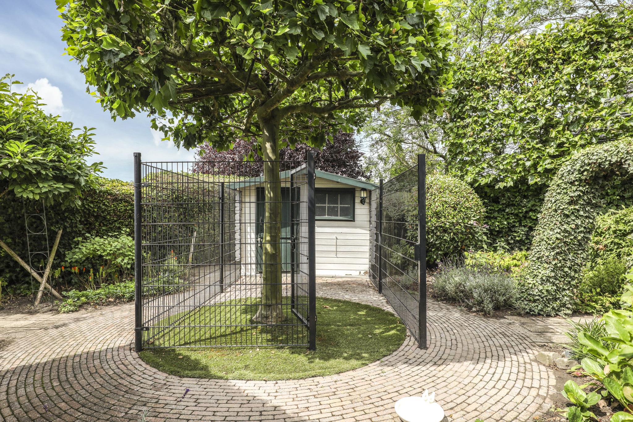 Door verschillende bomen, struiken en planten heeft de tuin een groen karakter. Een dakplataan zorgt op een warme zomerdag voor de (gewenste) schaduw. Het houten tuinhuis heeft zijn beste tijd wel gehad, maar biedt ook perspectief om er een nieuwe veranda te plaatsen. Verder is de schutting met de buren onlangs vervangen door een degelijke erfafscheiding met betonpalen.