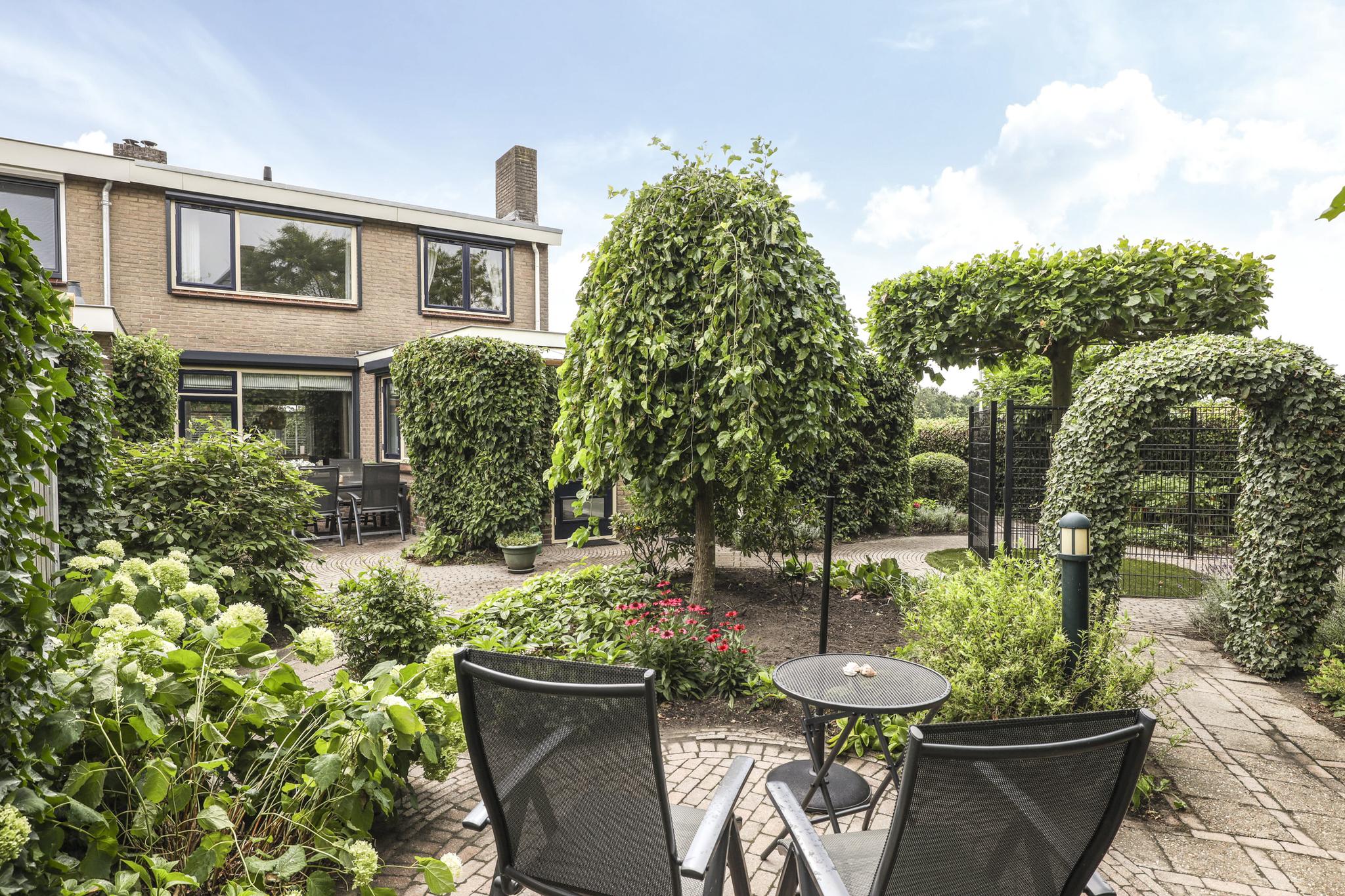 Het perceel is groter dan gemiddeld, namelijk 447m2 (!) wat voor veel vrijheid en ruimte rondom de woning zorgt. Er zijn verschillende terrassen aangelegd en diverse planten, hagen en bomen zorgen voor een groen karakter. De locatie aan de rand van het dorp geeft een panoramisch uitzicht over de weilanden. Winkelvoorzieningen, scholen, treinstation en uitvalswegen (A15) zijn binnen handbereik gelegen.