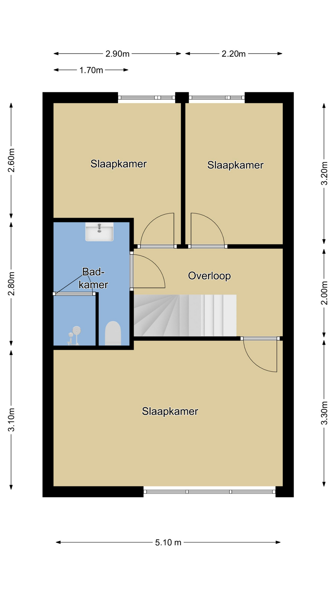 Drie slaapkamers met rolluiken