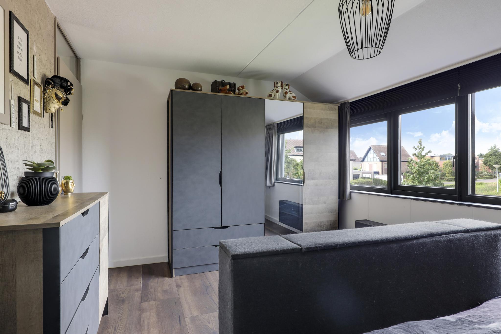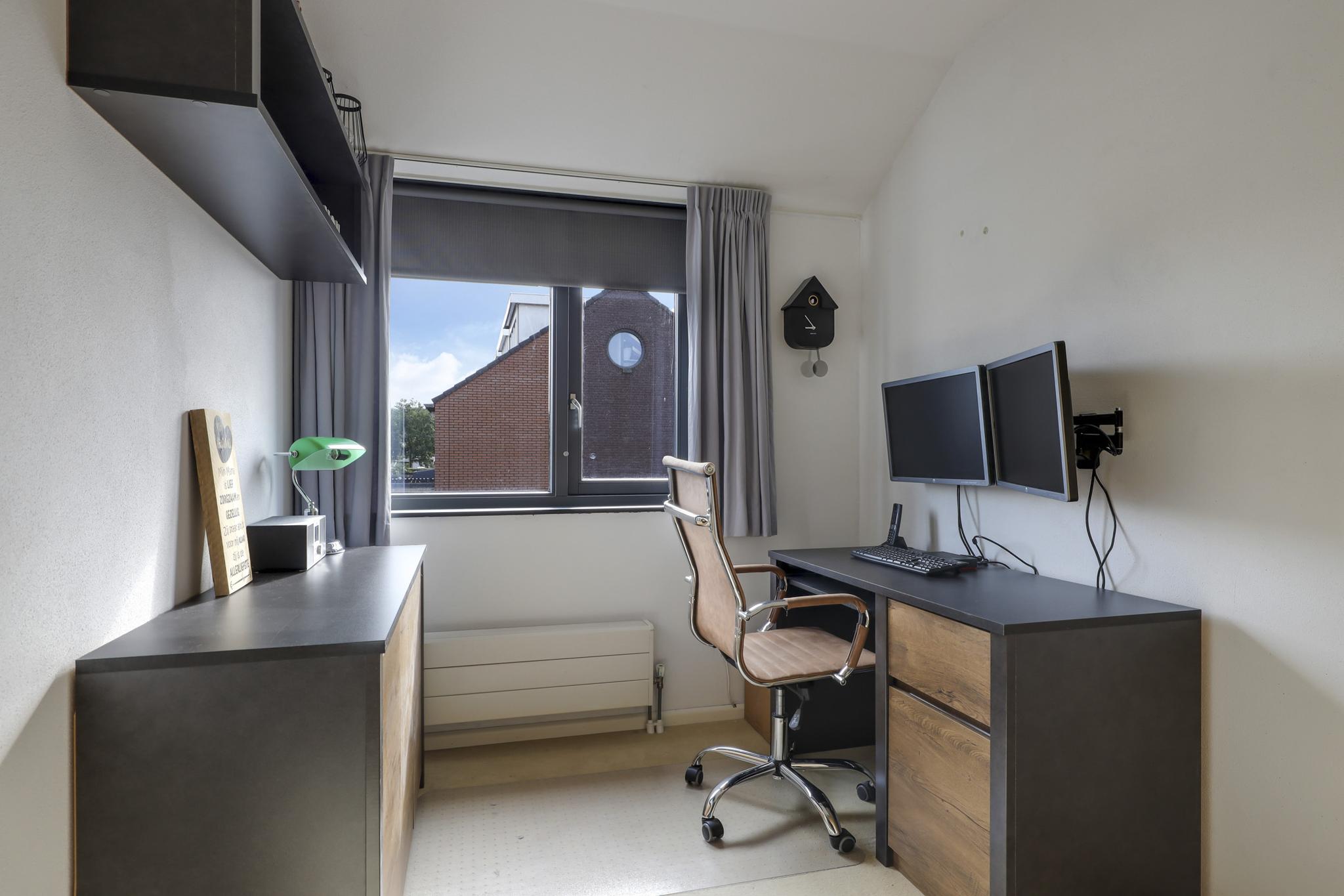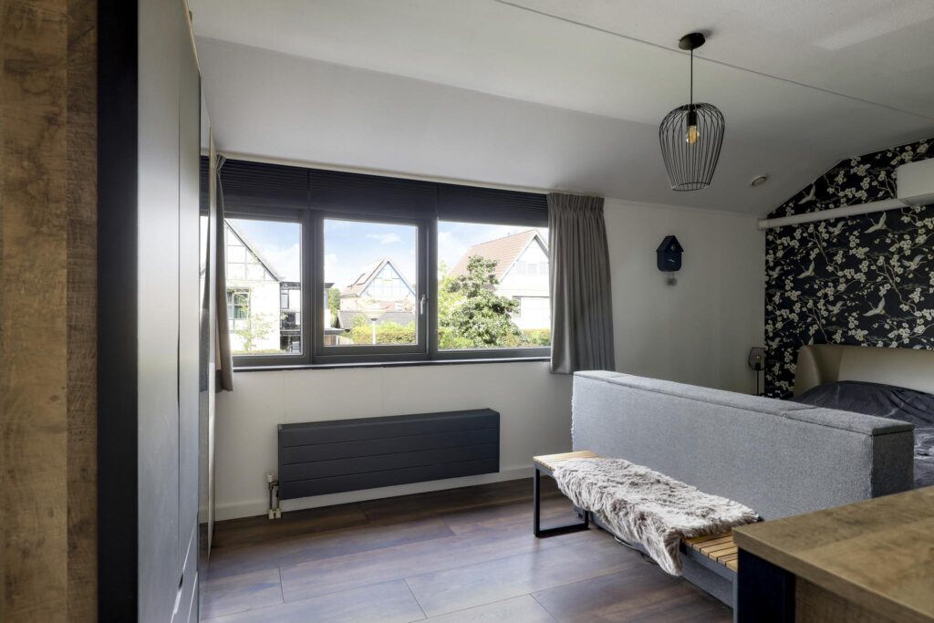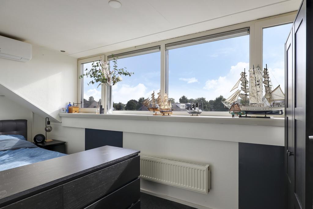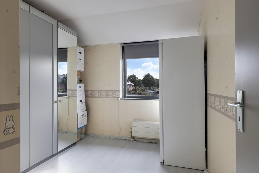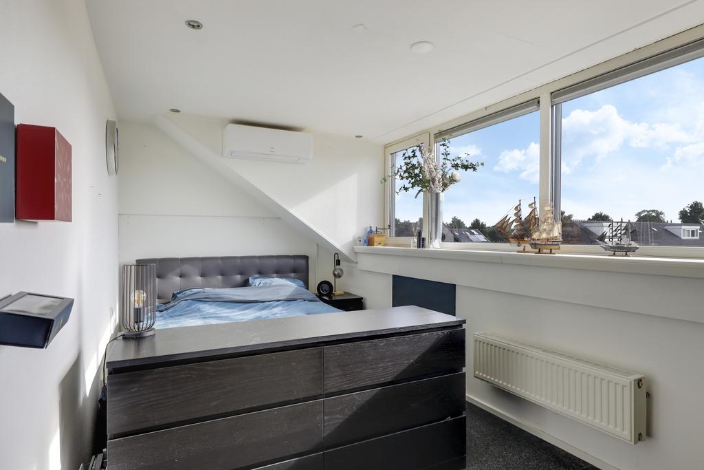Op deze woonlaag is een 4e slaapkamer gecreëerd. Dit is gedaan in combinatie met een maximaal breed dakkapel waardoor er een volwaardige slaapkamer is ontstaan van ca. 10m² groot. De dakkapel heeft een kunststof kozijn met 2 draaikiepramen en een ingebouwd rolluik. De kamer is aangenaam op temperatuur te houden doordat ook hier airconditioning aanwezig is (koelen én verwarmen).