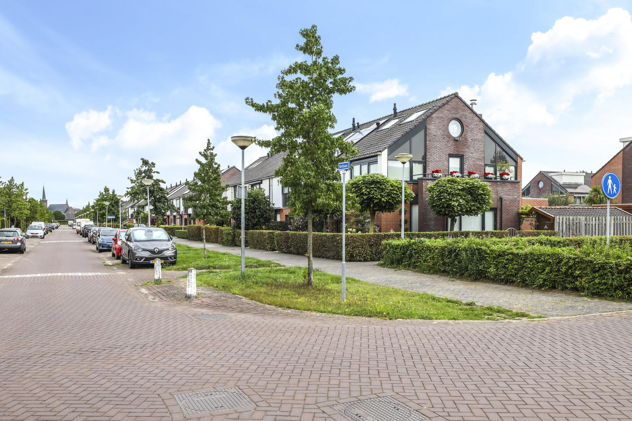 De Kerklaan is een royaal en groen opgezette straat waar je de auto pal voor de deur parkeert. Winkelvoorzieningen, basisscholen en het recreatiegebied liggen binnen handbereik.