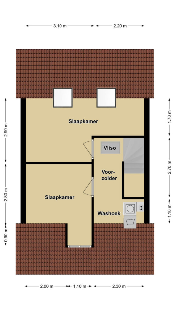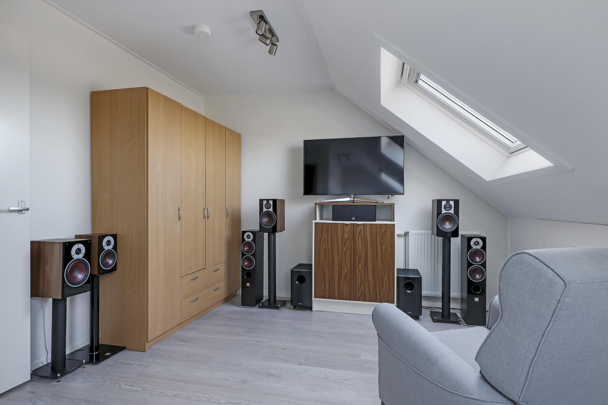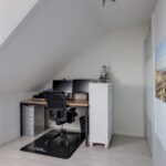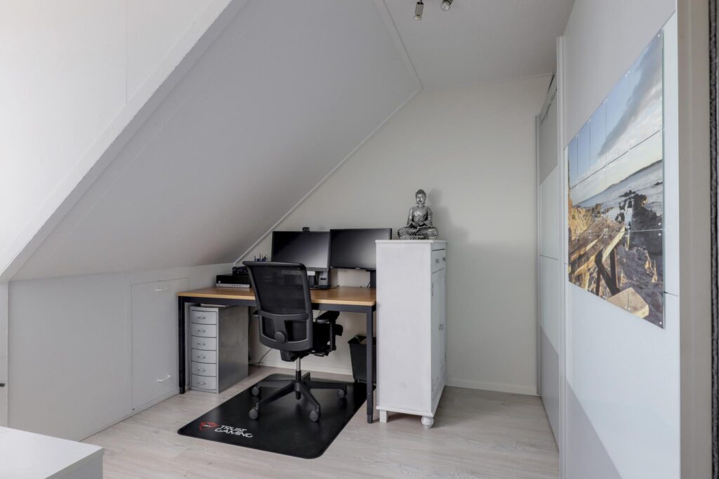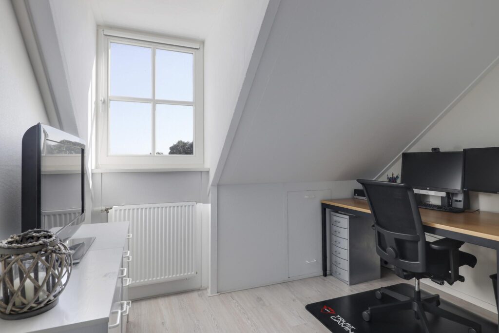 De kamer aan de voorzijde heeft een dakkapel wat de ruimte een extra dimensie geeft. Dit zou bijvoorbeeld ook een prima werk/studiekamer kunnen zijn. Net zoals de andere kamer aan de achterzijde die is voorzien van 2 grote Velux dakvensters die voor veel lichtinval zorgen. Overigens zijn beide dakvensters voorzien van verduisteringsschermen waardoor de kamers 100% donker te maken zijn. Achter de knieschotten is nog de nodige opbergruimte te vinden.
