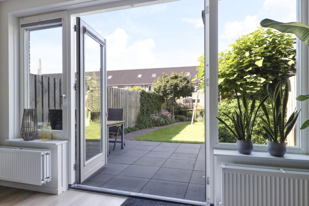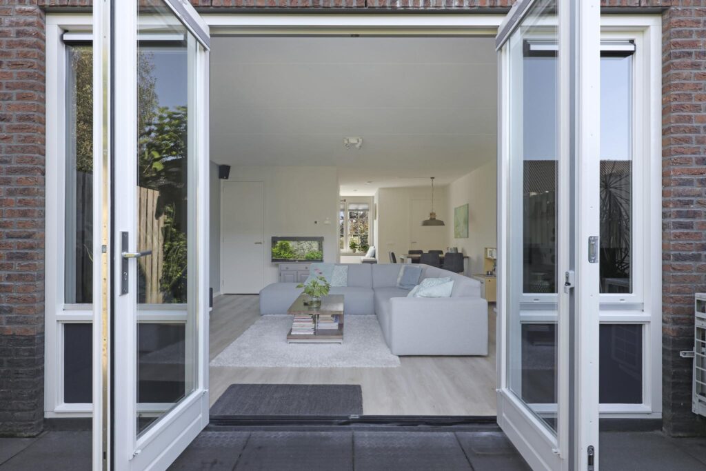 Uitgebouwde woonkamer met dubbele terrasdeuren