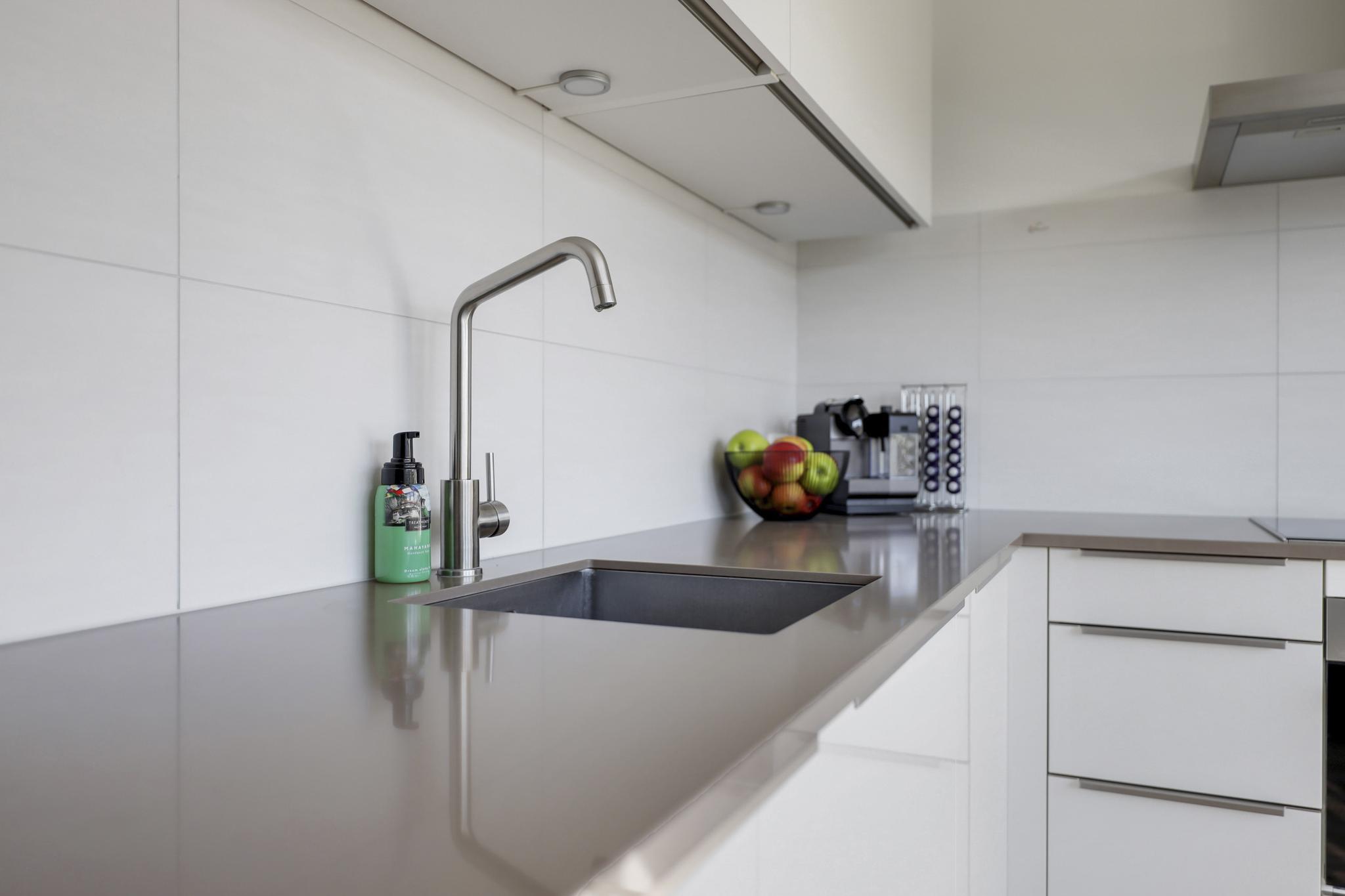 Luxe inbouwkeuken met o.a. een composiet aanrechtblad