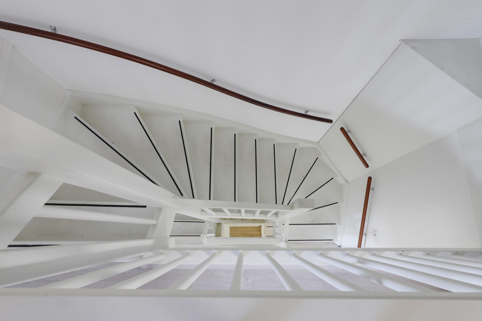 Een vlizotrap geeft toegang tot de zoldervliering. Deze is geheel bevloerd en daardoor geheel te gebruiken als opbergruimte. De nok ligt hier op 1,3 meter hoogte waardoor het de moeite waard is om bijvoorbeeld vakantie- en seizoenspullen op te bergen.