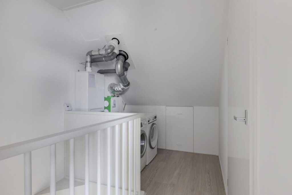 Washoek met witgoedaansluitingen, CV-ketelopstelling en MV-unit.