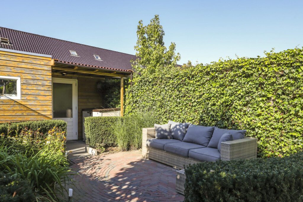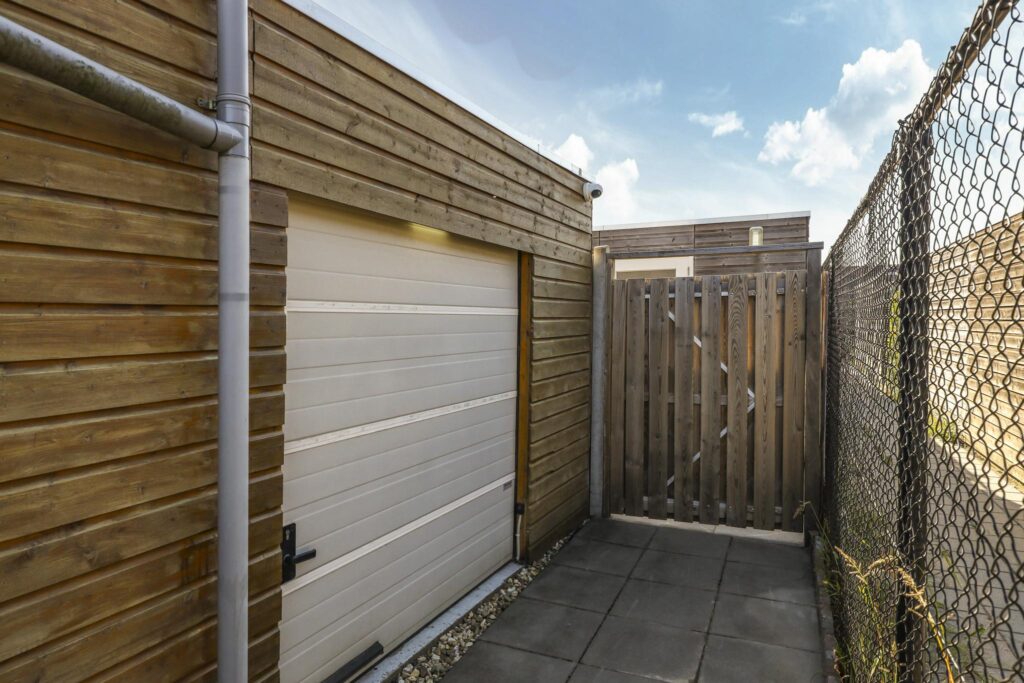 Een ander groot pluspunt is de 19 meter diepe achtertuin. Er zijn 2 terrassen aangelegd waarbij de elektrisch bedienbare zonwering achterblijft. Achterin de tuin staat een grote schuur (ca. 23m2) die zelfs groter is dan een gemiddelde garage. Deze geïsoleerde schuur met keukenblokje biedt ruimte aan meerdere (elektrische) fietsen en/of motoren. Er is zelfs een elektrisch bedienbare sectionaaldeur aangebracht.