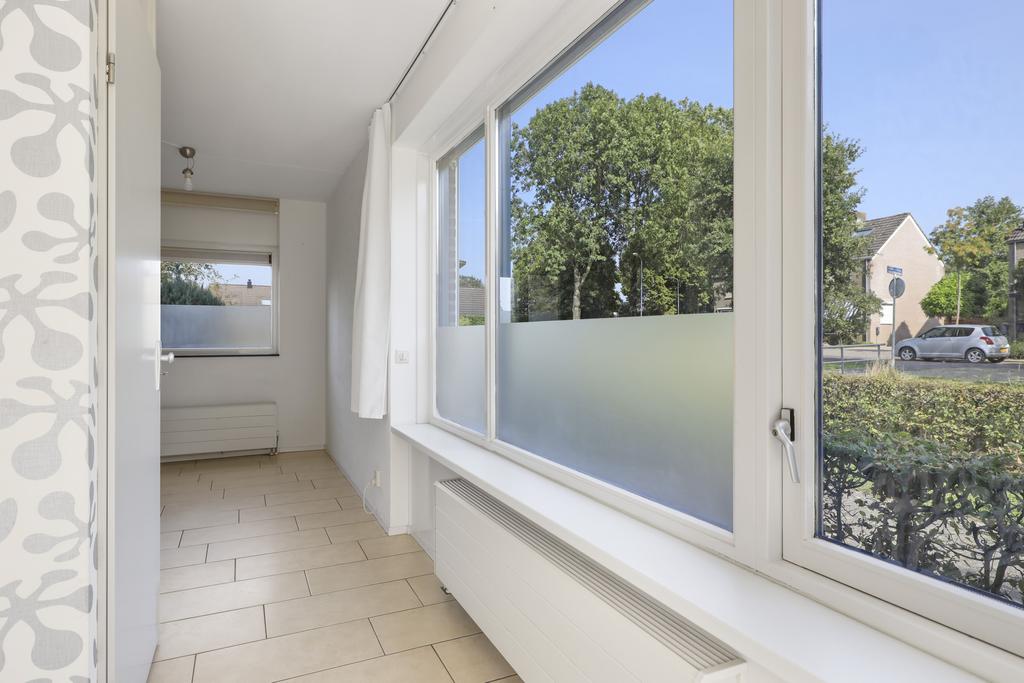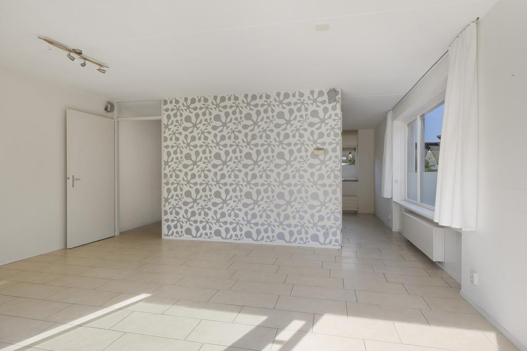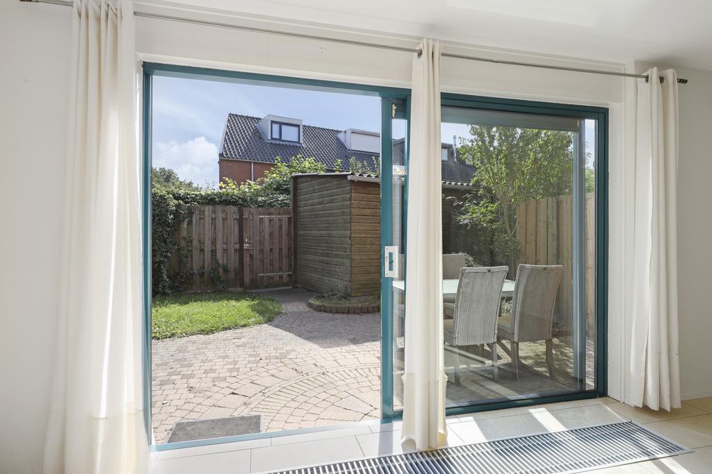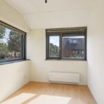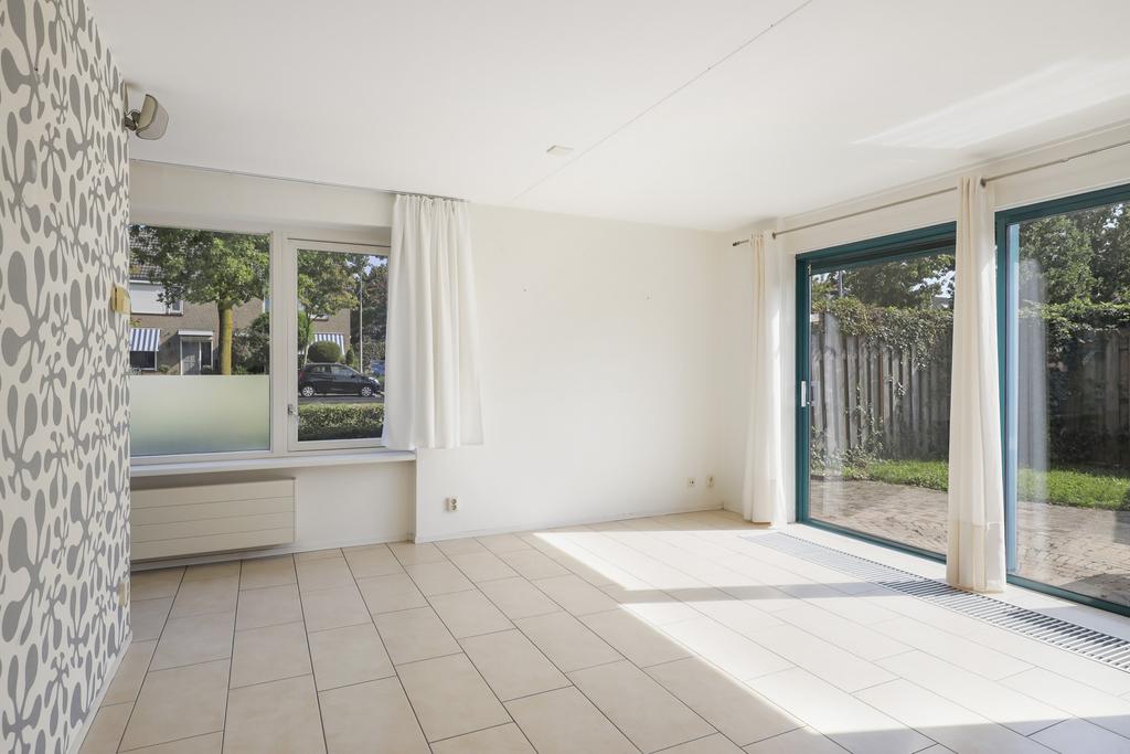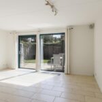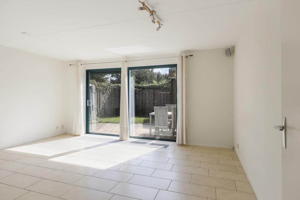 De woonkamer is tuingericht waardoor je hier prettig van de je af kijkt. Een brede schuifpui zorgt dat je in de zomerdag de woonkamer en tuin eenvoudig bij elkaar kunt betrekken. De hoekligging is wederom een pluspunt doordat je hier grote zijgevelramen hebt welke niet alleen een prettig uitzicht bieden, ook geniet je hier van veel extra lichtinval. Er is een convectorput aangebracht zodat de radiator niet in de weg staat bij de inrichting van de ruimte.