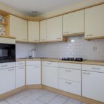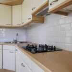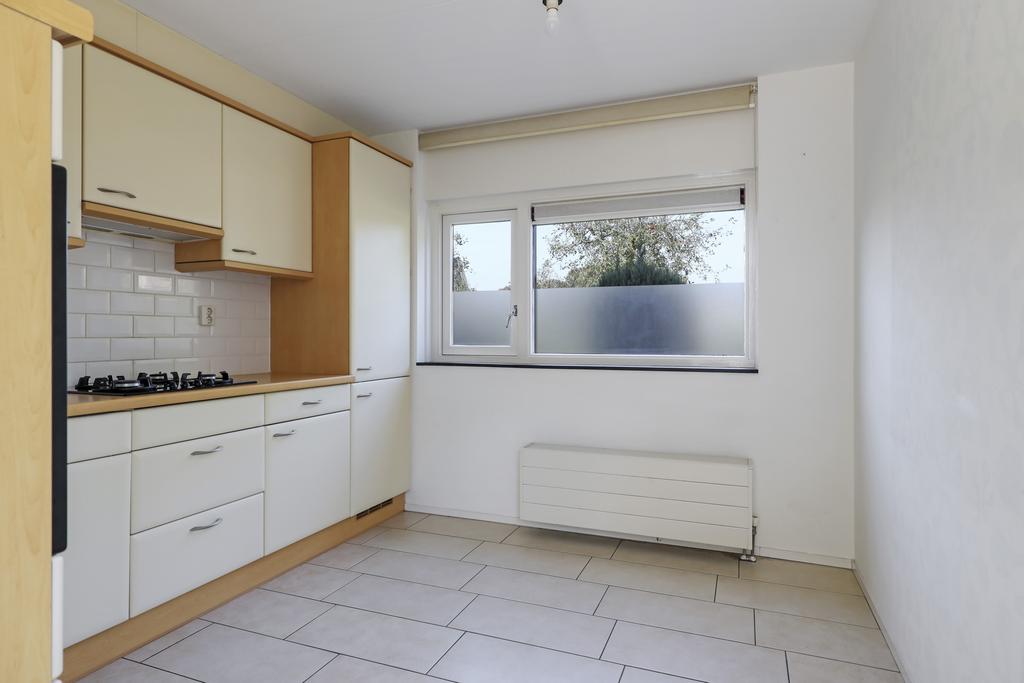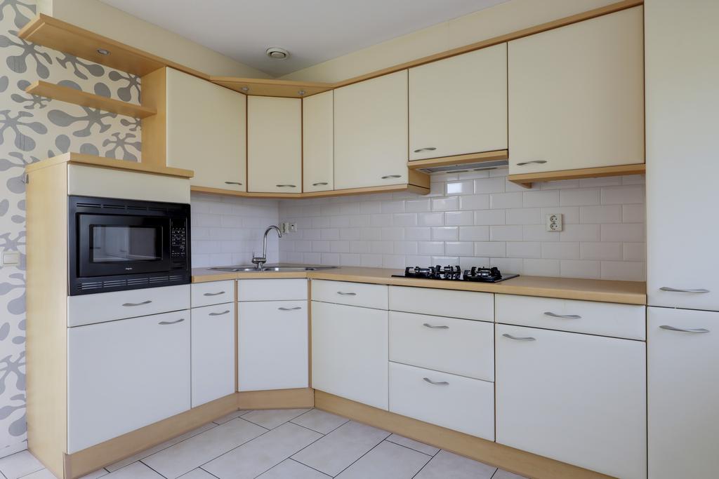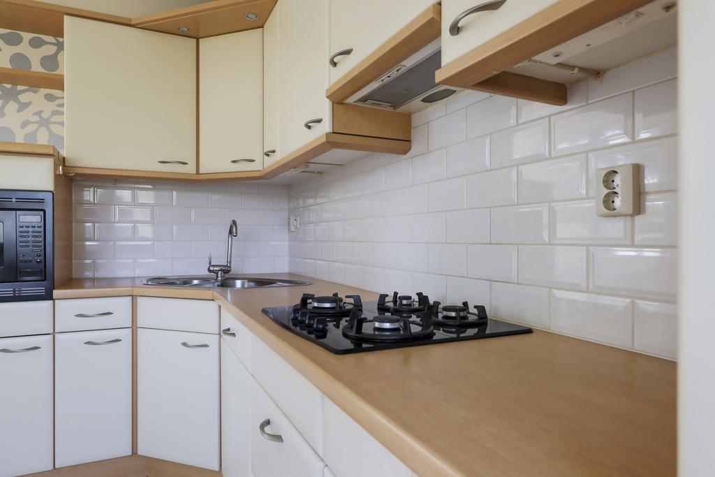 De keuken is aan de voorzijde van de woning gelegen waarbij je vrij uitzicht hebt op de groenstrook voor de woning. Het keukenblok is in een hoekopstelling geplaatst waarbij bovenkasten veel opbergruimte bieden. In de keuken is voldoende ruimte voor een eettafel waardoor je hier een ware leefkeuken kan creëren. De inbouwapparatuur bestaat uit een koel/vriescombinatie, een vaatwasser, een gaskookplaat, een afzuigkap en een combi-oven/magnetron. Direct naast de keuken is de trapkast te vinden, waardoor je de voorraad binnen handbereik hebt.